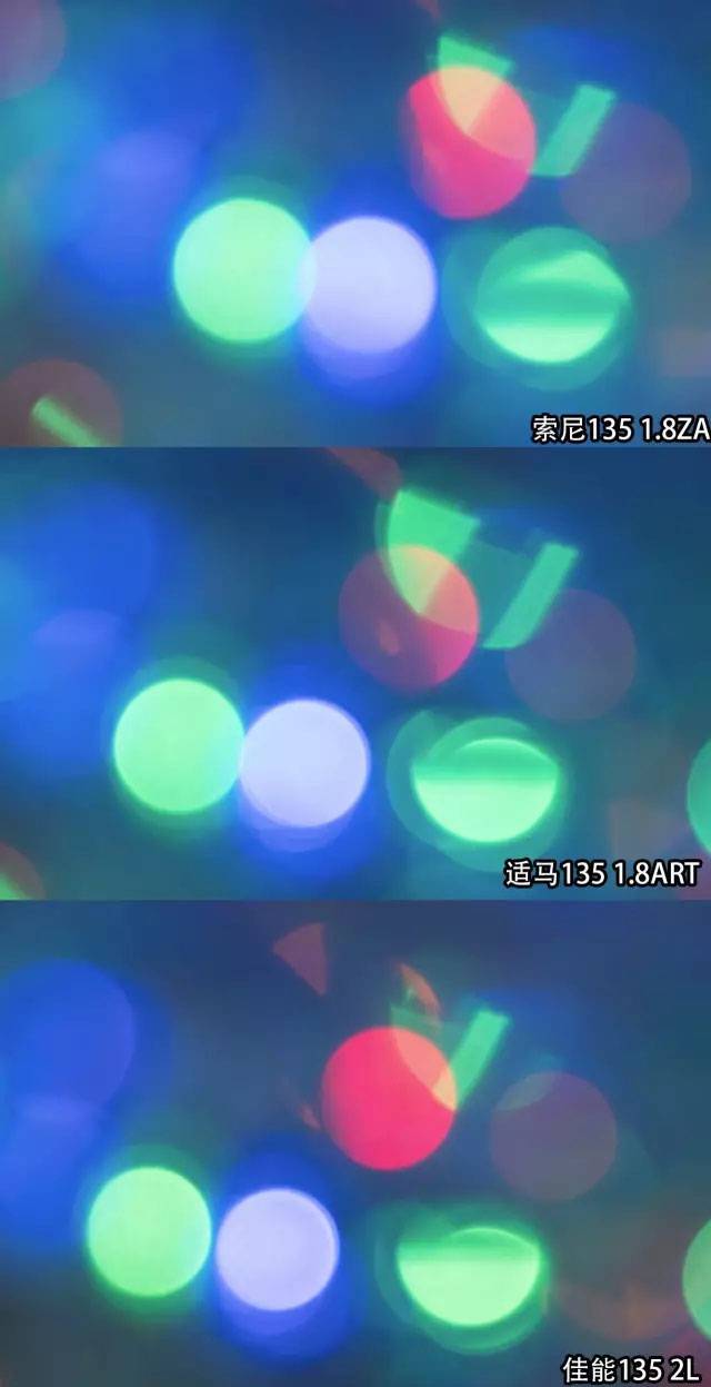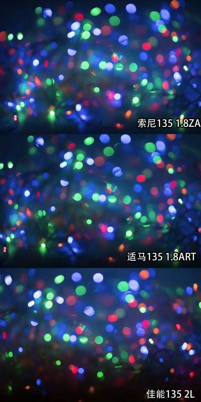 可以看到光斑最干净的是适马135 1.8ART,口径蚀方面两支1.8的镜头相差不大,135/2L由于口径只有72mm显得严重一些。