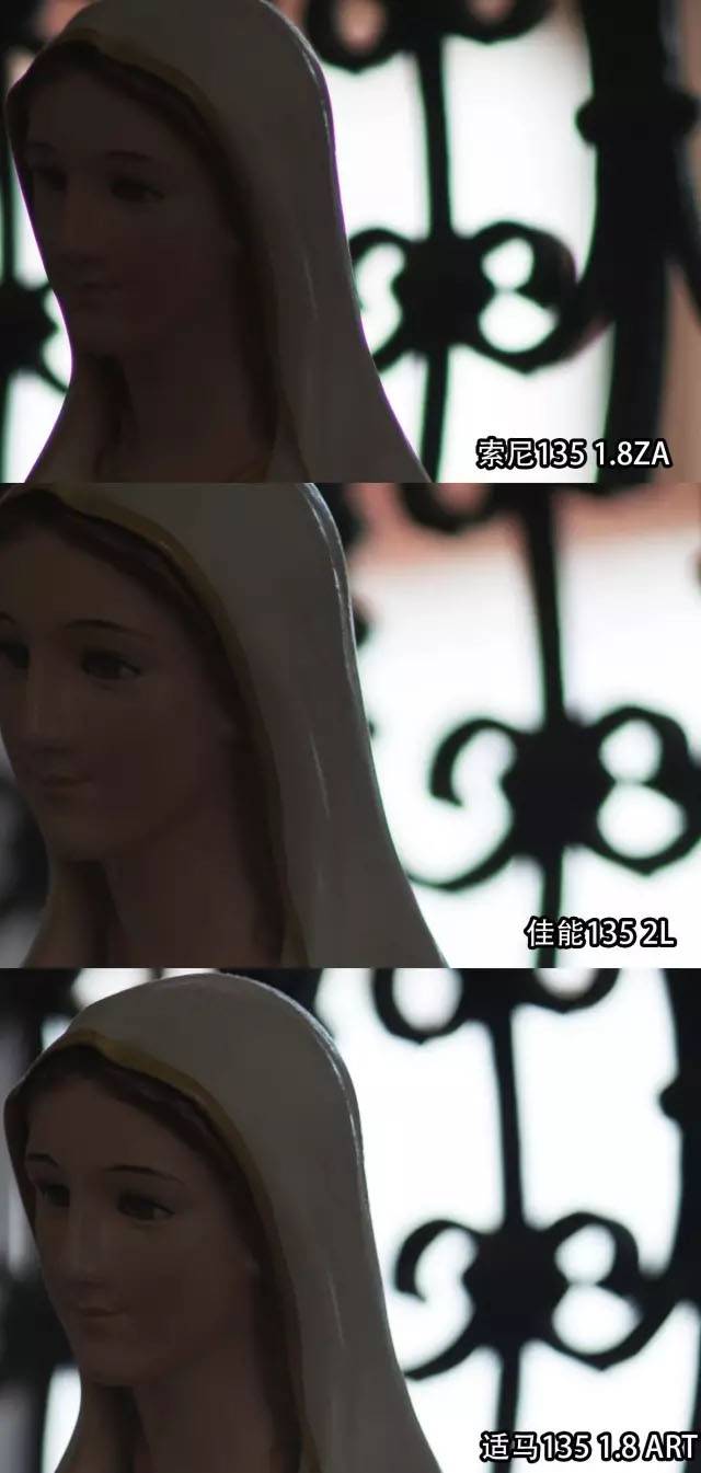 感觉索尼135 1.8ZA可以跟尼康的24-70VR一起封一个紫边王了——一个焦内王,一个焦外王。反倒是适马135 1.8ART没有延续85 1.4ART焦外爆炸的紫边,轴向色差控制得不错。为了让大家直观的感受一下这几个冰冷的数字背后对应的效果,我们找了一个高反差环境(从室内对着窗外拍摄窗台上的雕像),拍摄了一组实拍照片供大家进行对比: