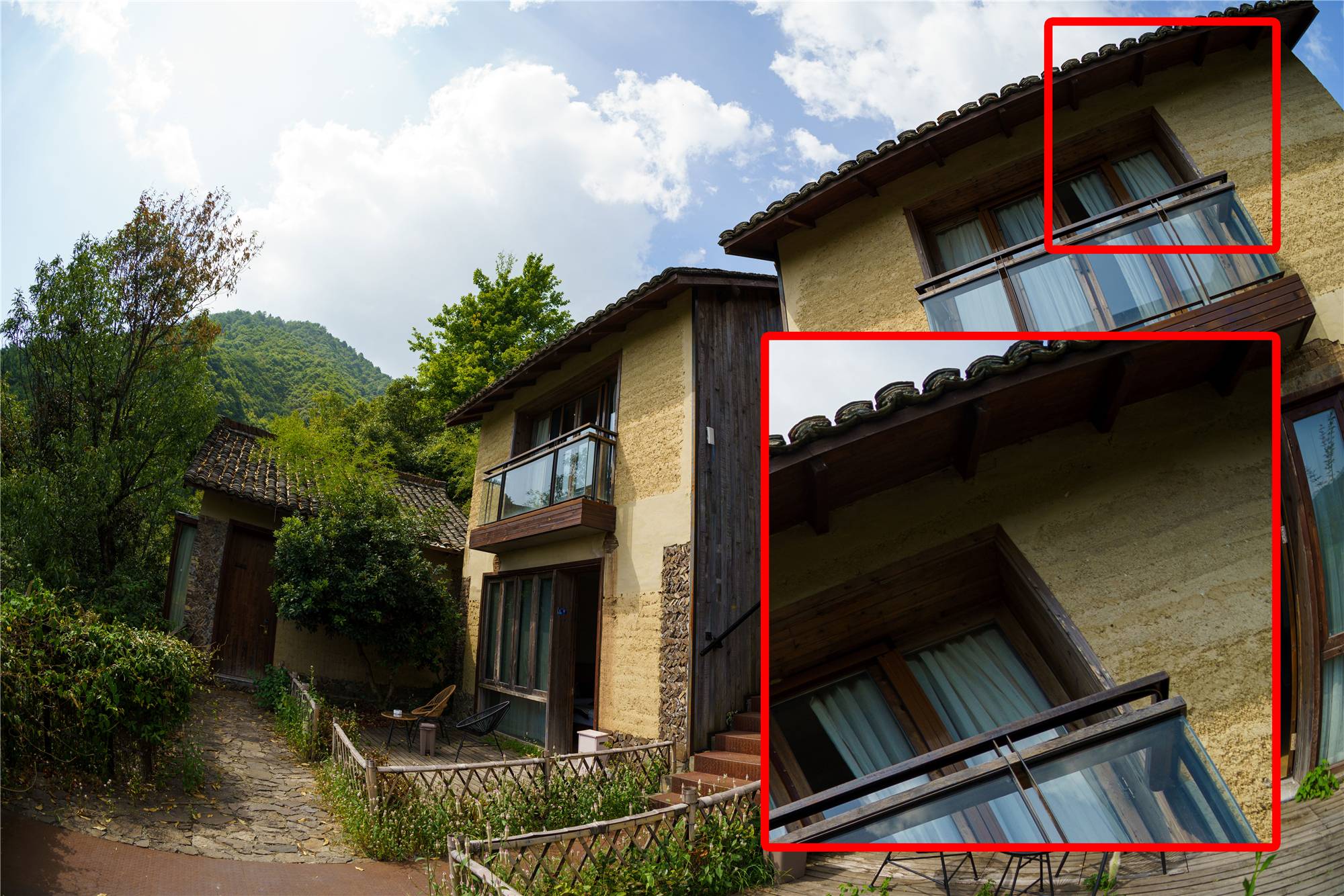 其次是画质,矫正的本质就是拉伸,矫正过程中短边是不拉伸的,长边会进行比较夸张的拉伸,直接影响就是画质下降,极限边缘的分辨率会下降比较多,尤其是当边缘有较多纹理的物体,拉伸之后在观感上下降不少,不用来工作当然是没什么问题。