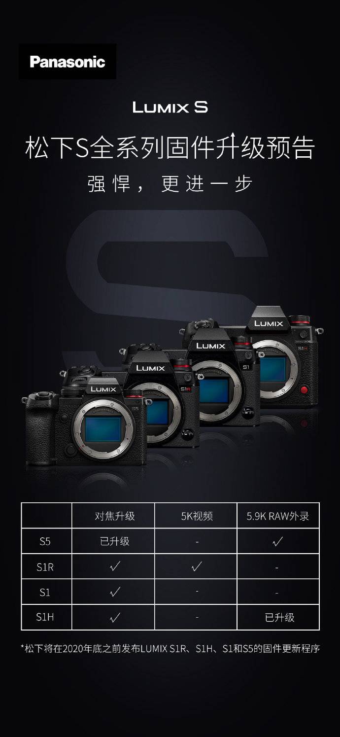 松下同时还公布了未来镜头和固件的开发计划。24/35/50/85四款F1.8镜头和70-300/4.5-5.6将在未来发布。S1系列的三款相机将有新版固件提升对焦性能,S1R还将有5K视频功能。希望这版固件能显著提升DFD对焦目前的短板吧。