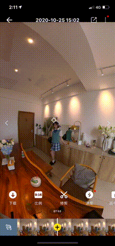 360度的全景视频还有个好玩之处是视频的运镜与选择角度不单可以在前期决定,也可以后期在软件里面改变。只需要动动手指,添加运镜的起点与终点,一段普通的片段也能“动感”起来。