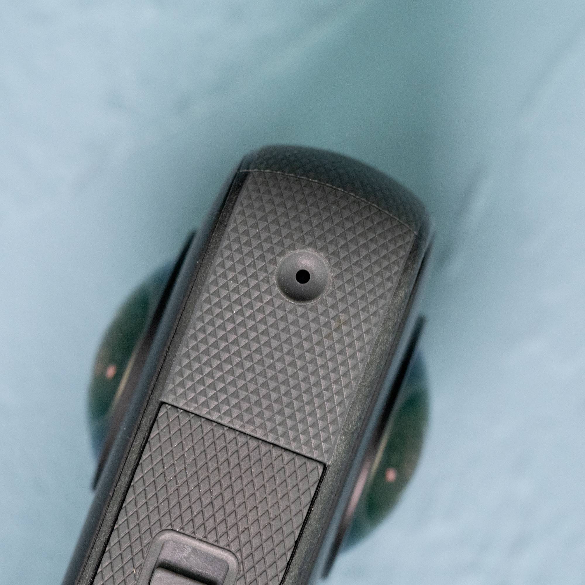 机器外表上有几个小孔,这些是ONE X2的阵列麦克风,麦克风一共有四个,分布在机器的正面、反面和两个侧面,确保各个方向的收音更立体、细腻。在使用ONE X2配套的后期软件时,软件会根据用户所选的视频角度,自动地把声音从环境音里“拾取”出来以获得更高质量的音频。