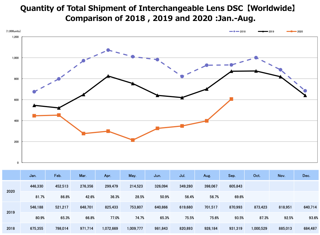 近日CPIA公布了今年9月全球相机市场总销量、固定镜头相机销量和可换镜头相机销量情况。3项数据相比8月都出现了大幅增长,使得9月成为了截至到目前表现最好的一个月。从同比来看9月的数据也开始接近去年同期的水平,在经历了前半年的低迷之后相机市场终于迎来了“金九银十”的丰收。