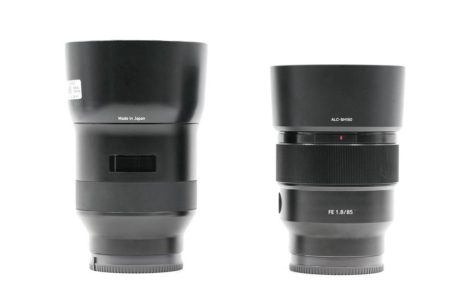 二者不同的两个地方一个是对焦环位置和材质,Batis的更靠近镜尾而且是橡胶亚光材质。FE85的对焦环是金属螺纹,同时更靠近镜头前端。