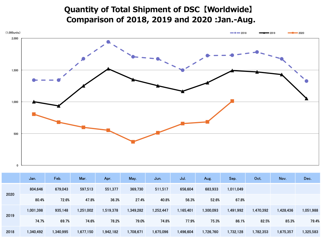 CIPA公布今年9月全球相机市场销量,环比大涨
