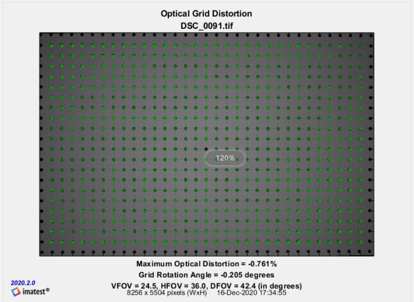 3、在考虑了畸变校正和倍率色差修正对于分辨率的影响之后输出最终的分辨率测试结果。原始的倍率色散(关掉能关的校正之后)和畸变数值一并给出,仅供参考(防止色散实在太大在大光比环境下翻车的情况)。