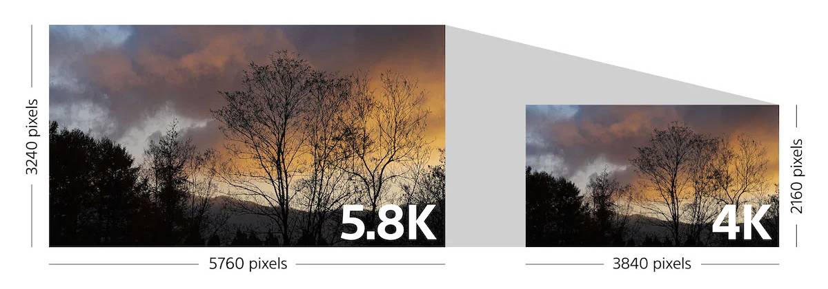 5000万像素高速传感器让α1成为我们遇到的第二款消费级8K视频相机。索尼采取了与佳能不同的方法:读取8640 x 4860像素的区域(传感器的全宽度),然后向下采样到7680 x 4320来8K输出,这样会有更少的摩尔纹。值得注意的是,索尼这是16:9的视频,而不是佳能采用的更宽的1.89:1的DCI宽高比。
