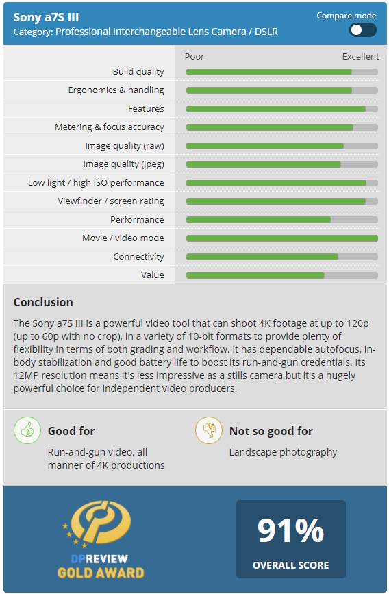 在评测中α7S III的优势是: