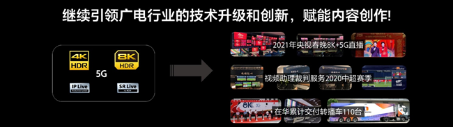 一直以来,索尼都是专业广播电视制作领域的先导,超高清化、智能化、远程虚拟制作是行业技术升级的大方向。在索尼的4K/8K/HDR超高清转播技术、5G直播技术、IPlive技术等加持下,无论工作人员是否在现场,都能以多角度的精彩素材,为观众真实、实时呈现生动的现场画面。2021年央视春晚,首次使用索尼8K摄像机、XVS 切换台及IP 系统,成功实践了8K+5G, 8K/100P直播制作,让亿万观众身临其境般地感受到现场的震撼与华美。2020中超赛季,在全程封闭赛程的挑战下,索尼视频助理裁判服务业务团队,克服困难,圆满完成服务工作。在中国,索尼已经累计为客户交付了超过110台转播车,未来将继续引领广电行业的技术升级和创新,为感动内容的创作贡献力量。