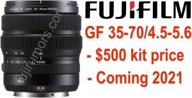 富士亲民中画幅变焦镜头GF 35-70mm 将于年内正式发布,光圈会是F4.5-5.6,套机时售价会在500美元,约折合人民币3000元左右。有中画幅的朋友们可以考虑一下。