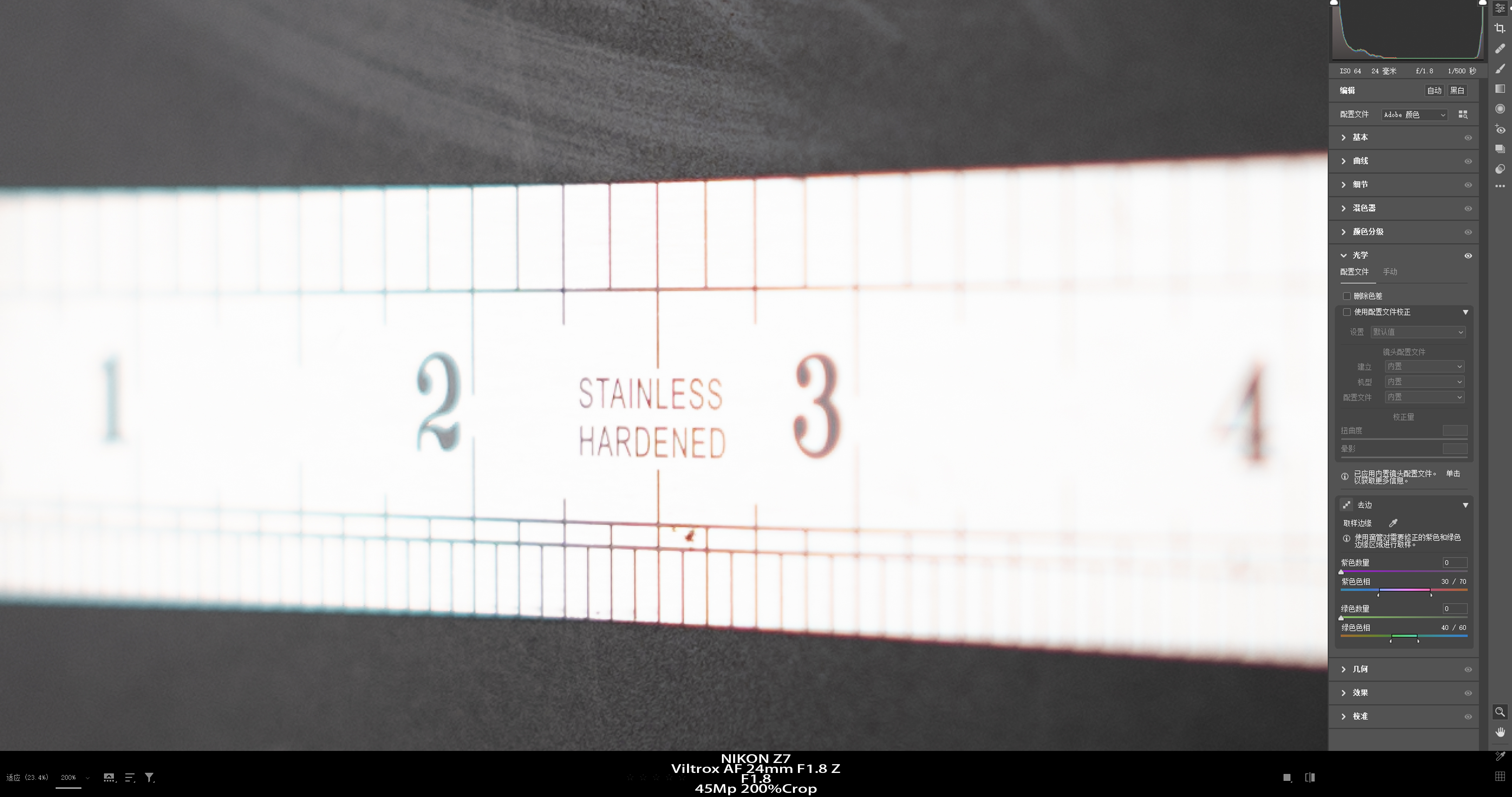 暗角和畸变两项就不太好看了,由于受限于口径,暗角比较严重,想要消除光圈就要收缩到F5.6以后,畸变也是肉眼可感知的。对于拍照来说问题还不算严重,毕竟可以后期校正,但是拍视频的时候还是比较影响体验的。不过非常适合尼康最近新出的Z-fc,本身是Aps-c机身,配上全副镜头就可以完美规避暗角。