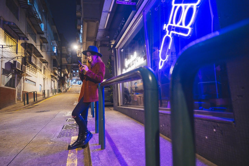 在广告灯箱的补光下,能轻松应对夜景人像