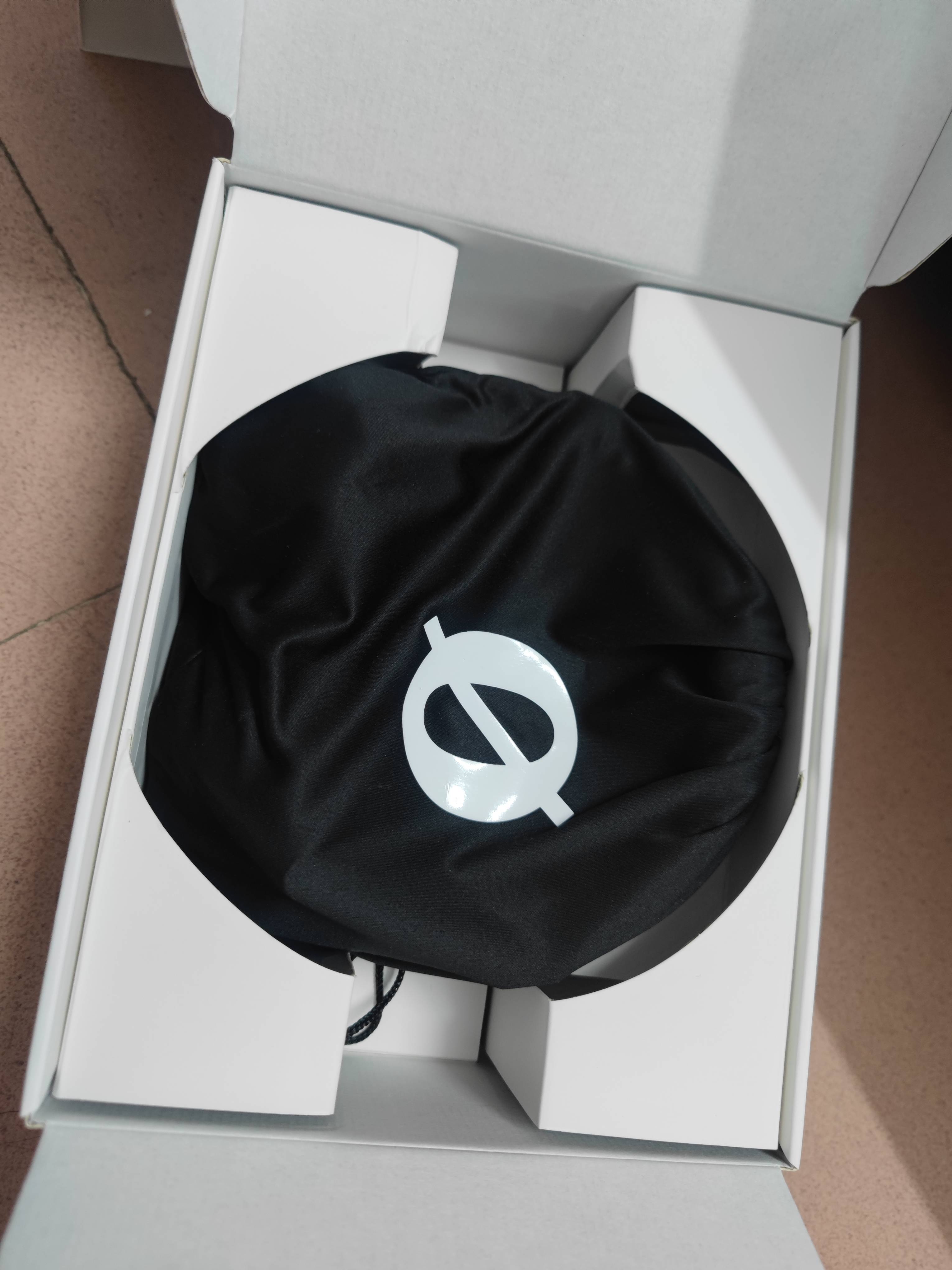 彩封里面还有个素色的盒子,打开后,耳机主体放在收纳袋里静静的躺在中间