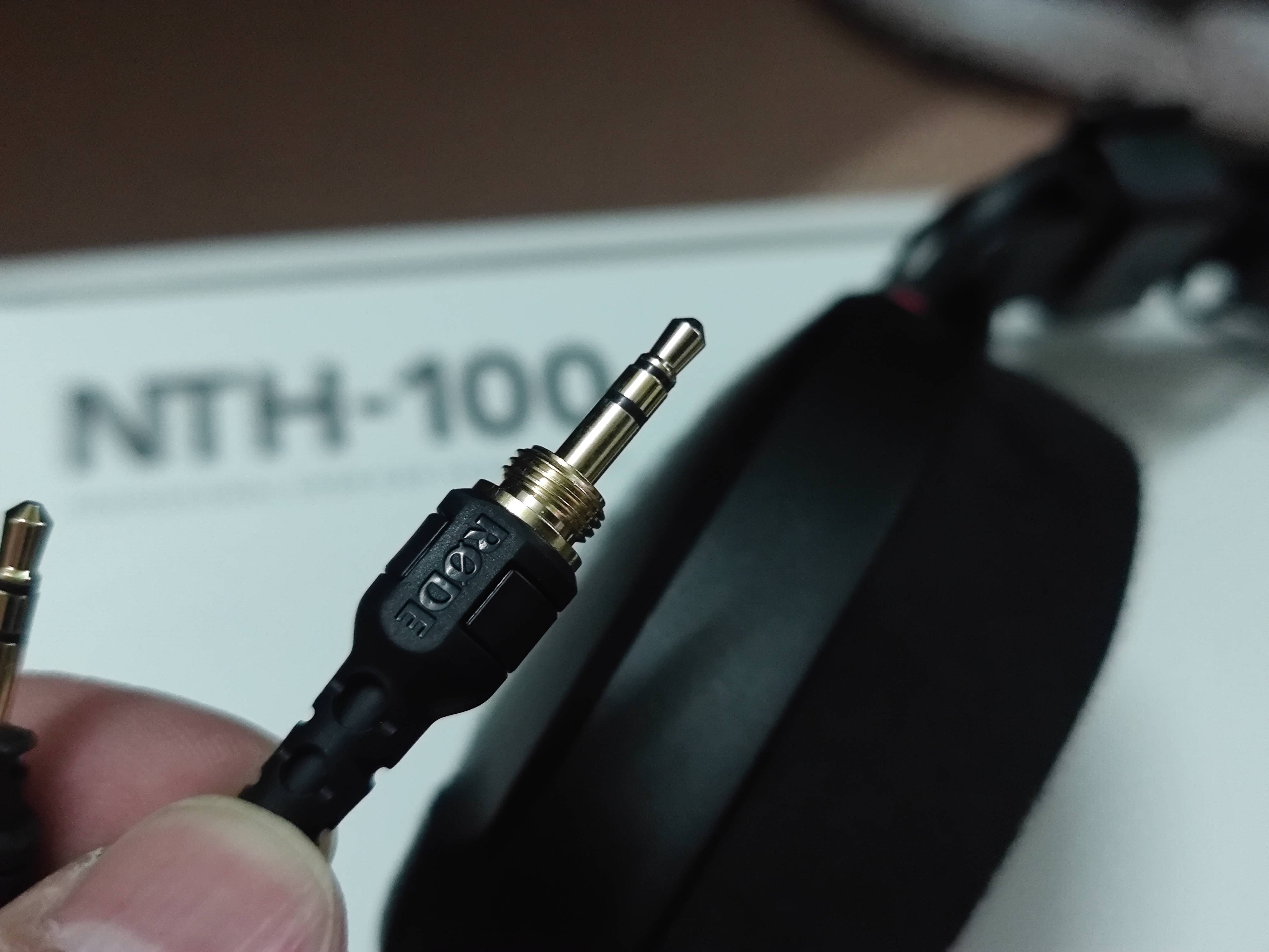 厚实的耳机壳是雾面材质的,中间有镜面的罗德logo,亮滑的可以当镜子了,下方耳机接口处还有个金色金属嵌入的标识