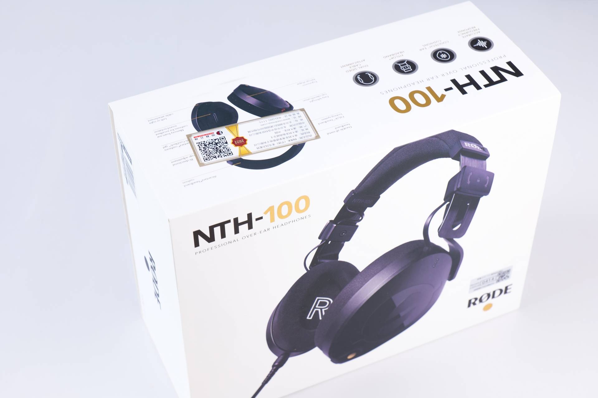 先看一下产品外包装,整体以黑白配色为主,非常的简约时尚,正面是罗德NTH-100的型号和外观展示。