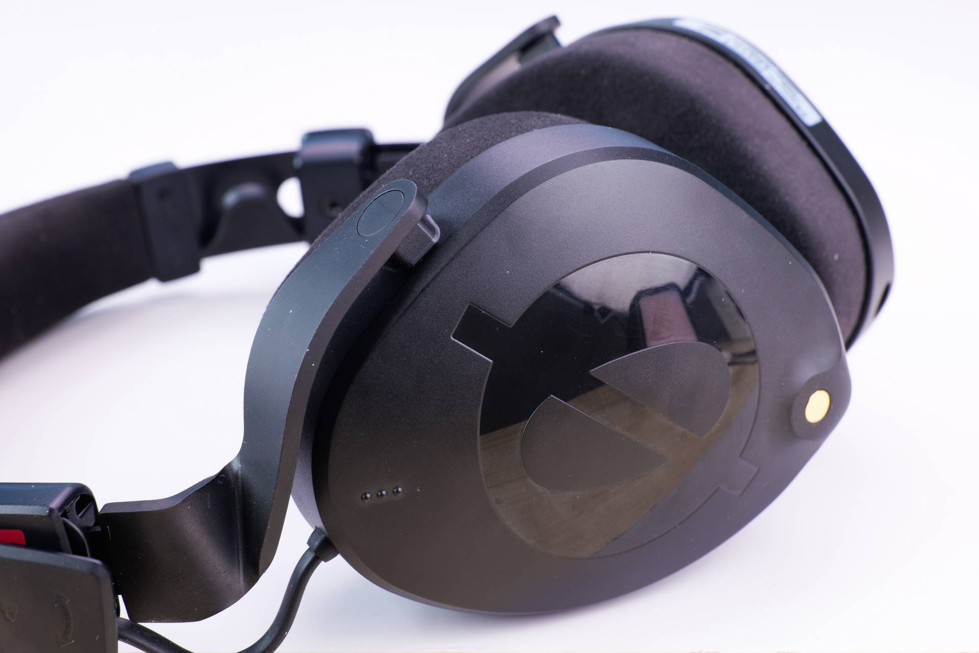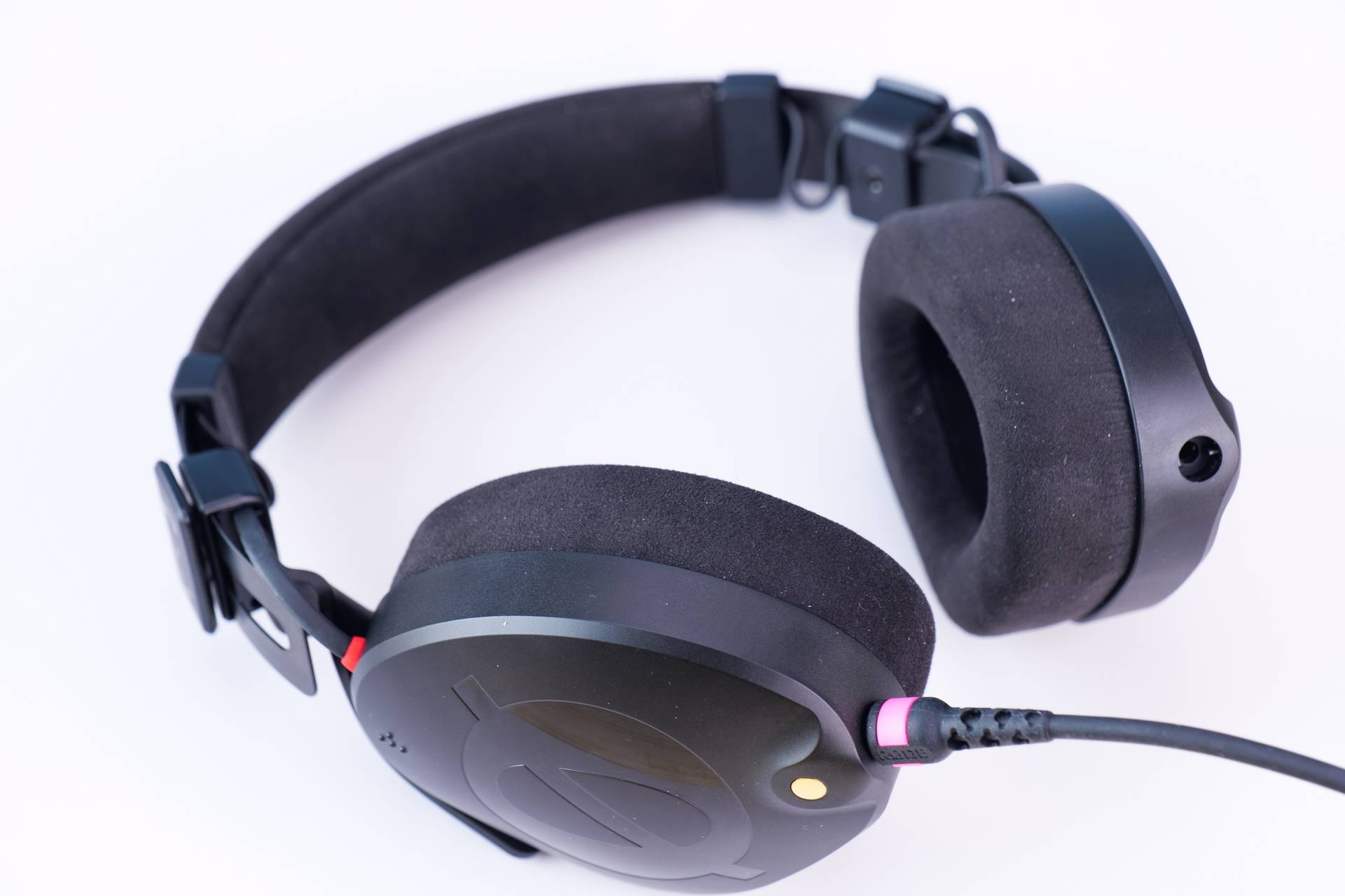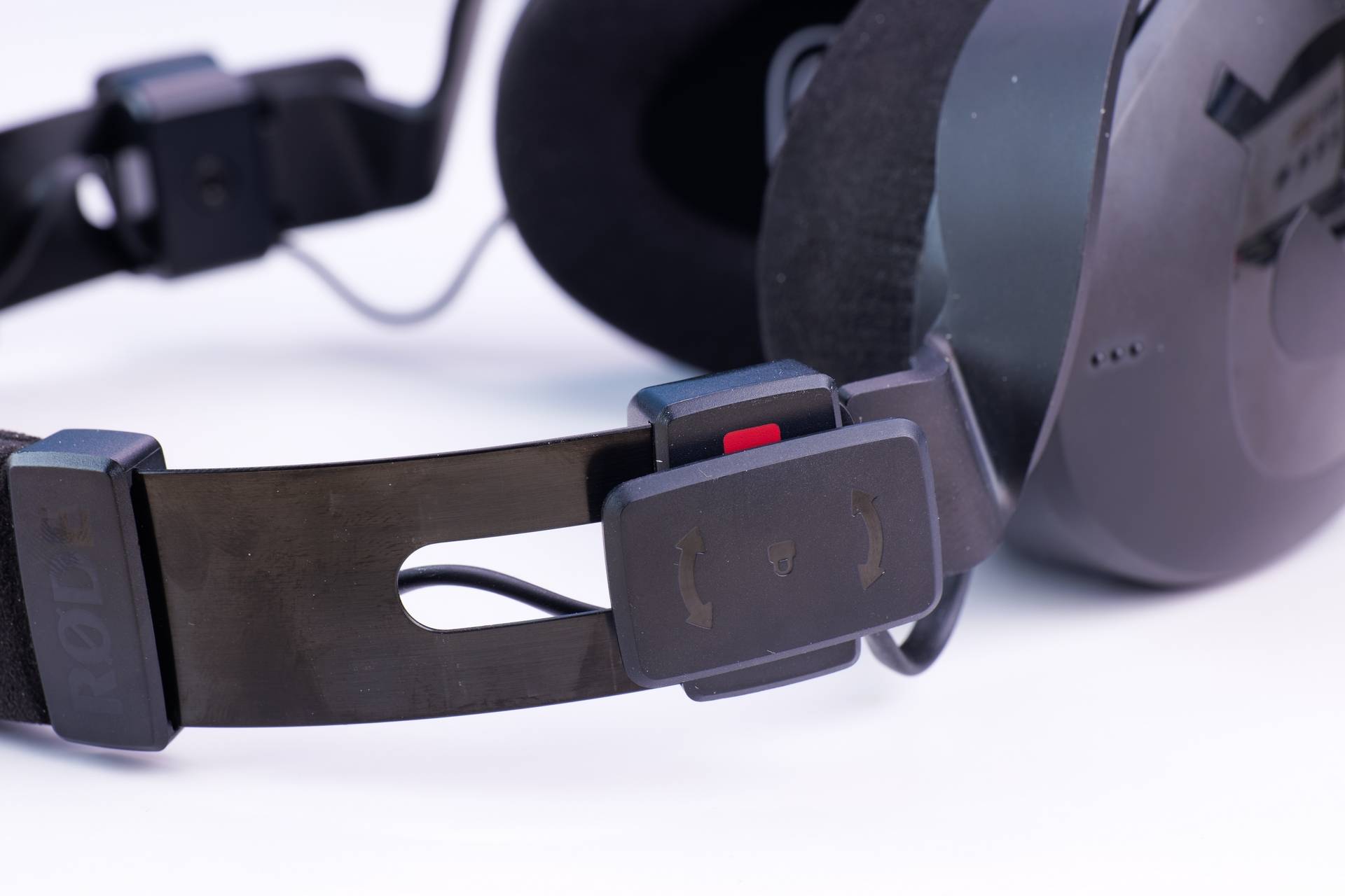 耳罩外侧采用磨砂喷涂工艺,RODE LOGO部分则是亮面工艺,接口处金黄色,以及接线处的红色点缀,真的非常时尚。