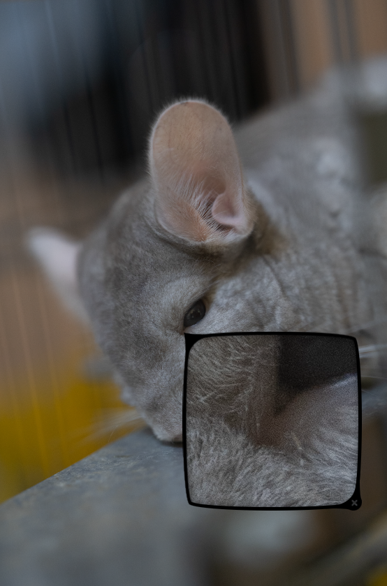 刚一到手,这号称空气切割机的焦段和光圈配置就给了笔者很大的惊喜。笔者家中养着一窝龙猫,由于小动物喜欢乱跑平时都住在笼子里,很难有无遮挡物拍摄的机会。然而135 f1.8强大的虚化能力使得隔着笼子拍摄也能够实现,强大的虚化能力很好的虚掉笼子前后的杂物,能够轻松得到柔美纯净的背景。不得不说是对于龙猫松鼠这样的笼养动物摄影爱好者的福音。可以看到,即使是f1.8光圈全开画面中心的锐度依然够用,即使是龙猫这样长着细微绒毛的动物也可以清晰数毛。