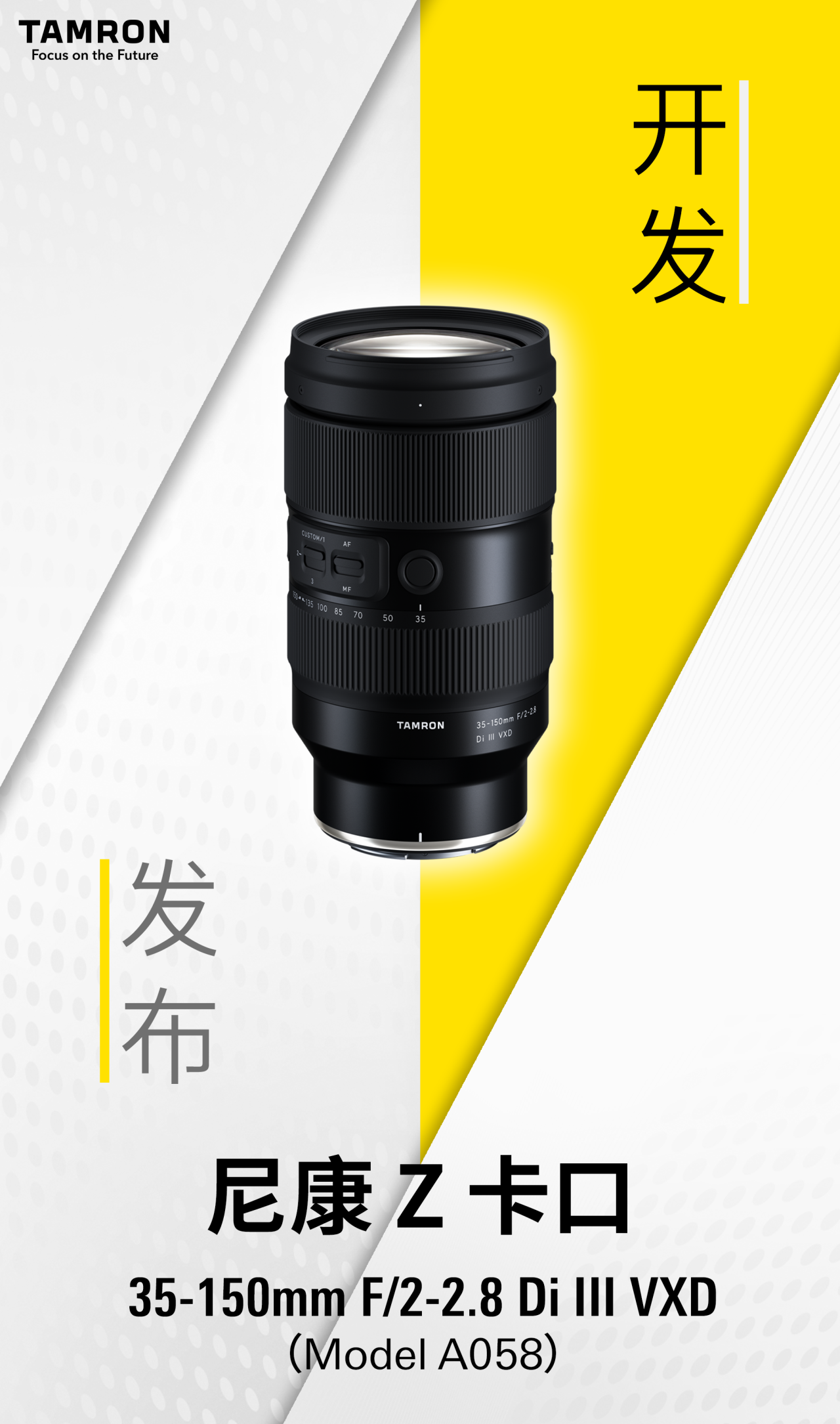 综合光学产品制造企业腾龙公司,将开发一款适用于全画幅无反相机的尼康 Z 卡口长焦变焦镜头——35-150mm F/2-2.8 Di III VXD(型号 A058)。