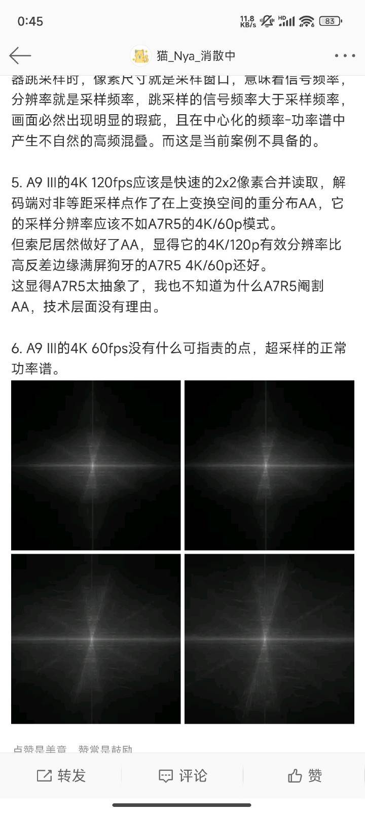 即可得到⑧老师文中差不多的结论,即垂直方向的像素合并,然后再做1:2的Digital Binning,此时这⑨个像素合并之后的频率基本由低频分量决定,从而实现了低通滤波,从物理原理上来讲跟佳能R5的多点OLPF倒是有十分甚至九分的相似。