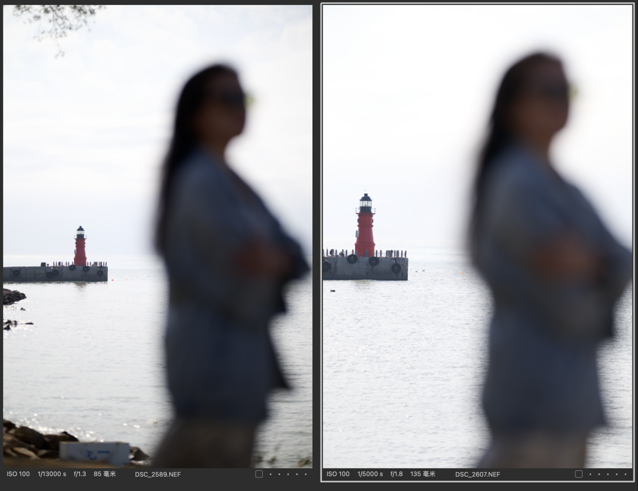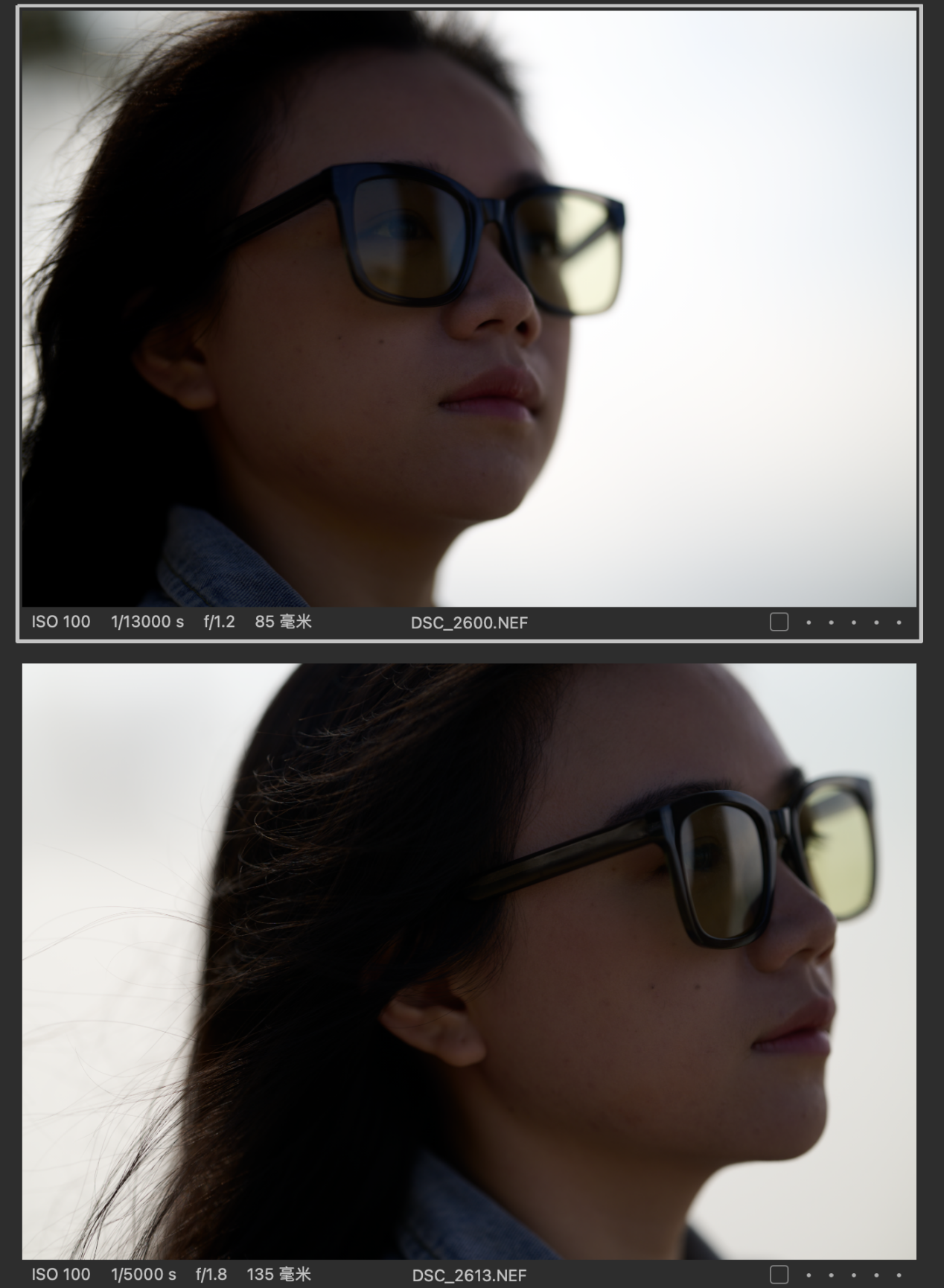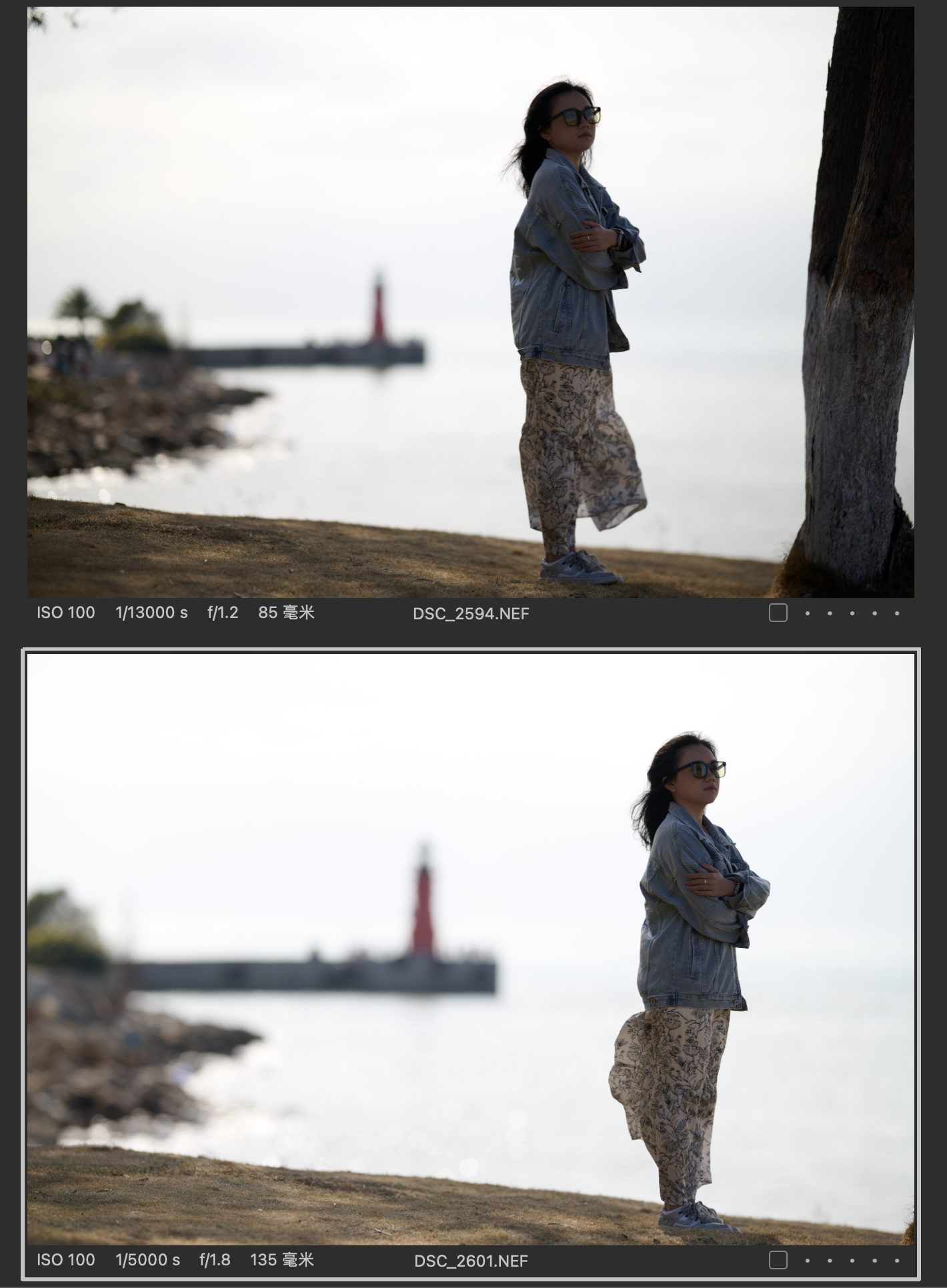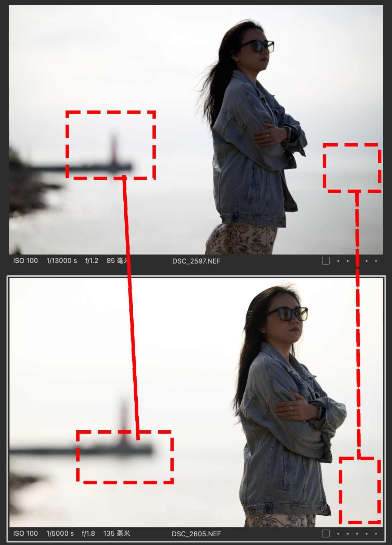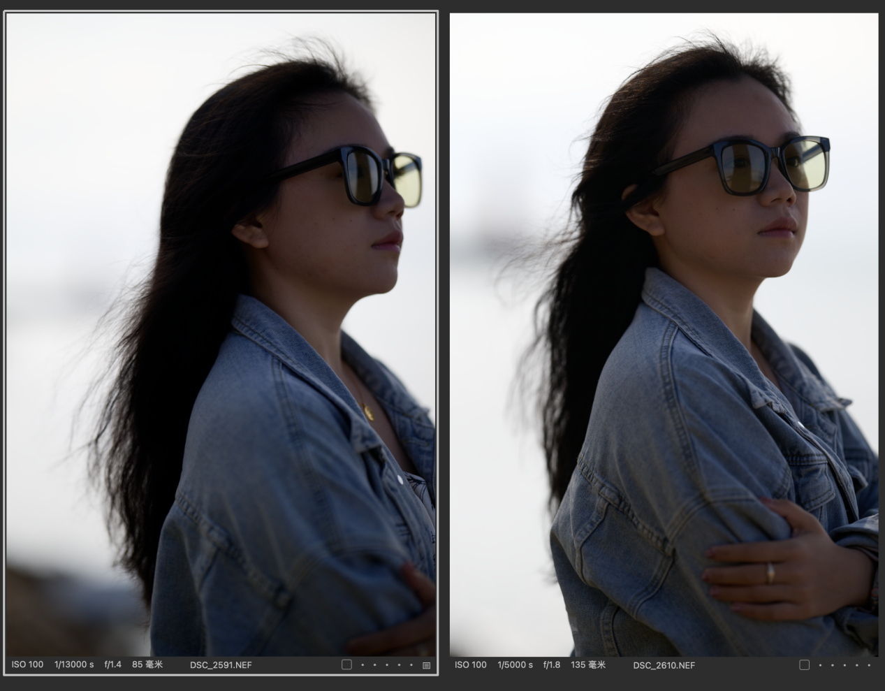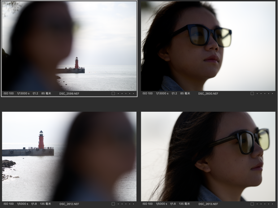 (对比图的排列都是以图一为Z 85mmf/1.2 S镜头拍摄,图二为Z 135mm f/1.8 S Plena镜头拍摄的顺序,且图下有参数标识)