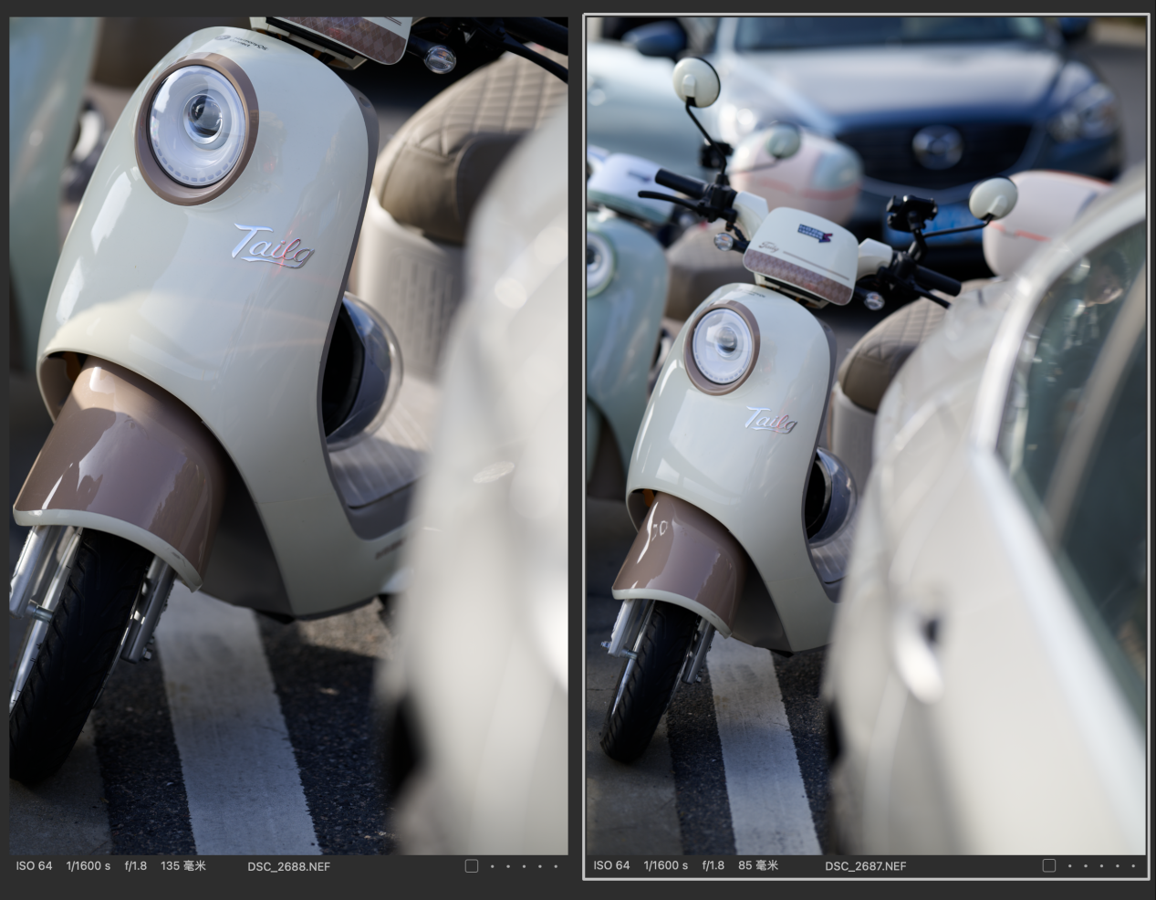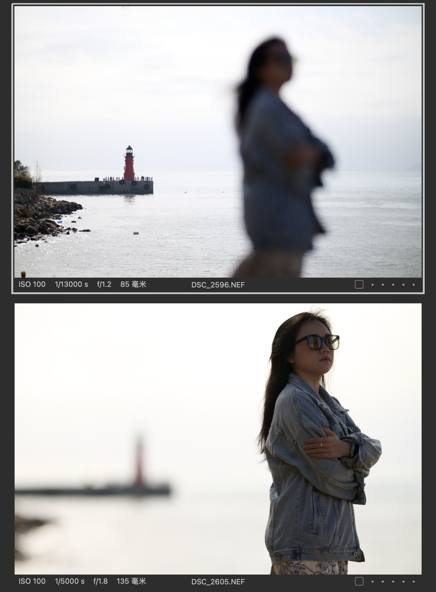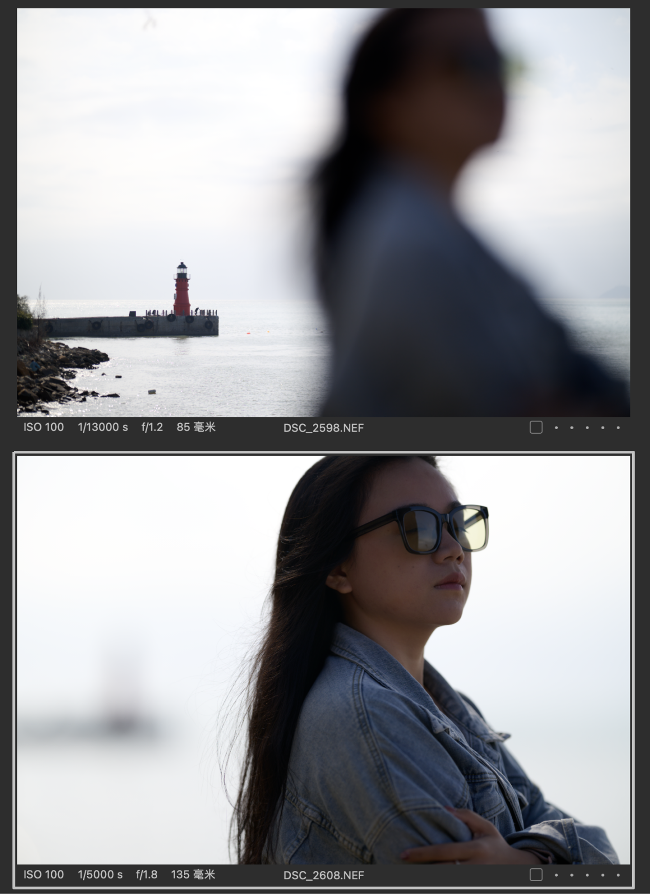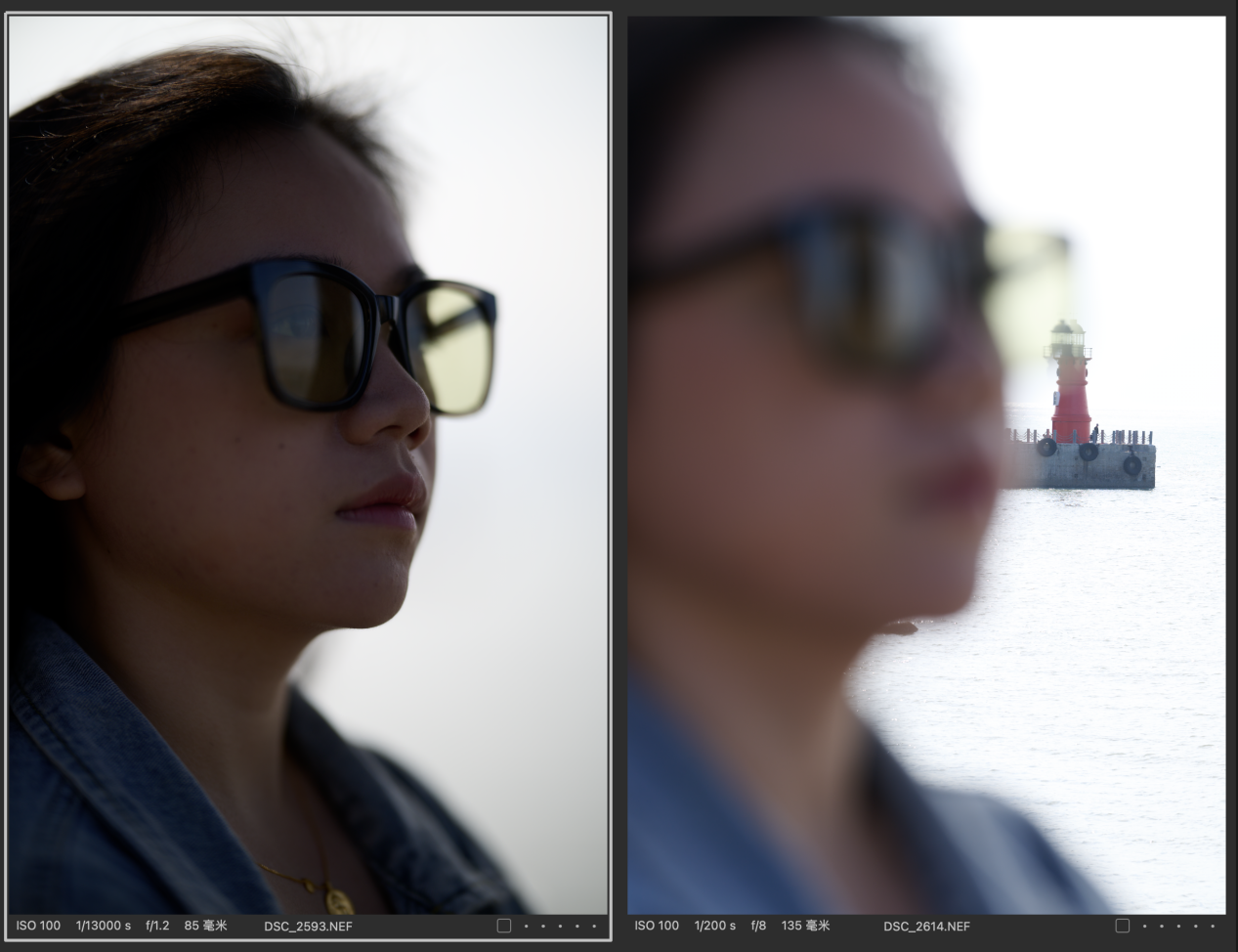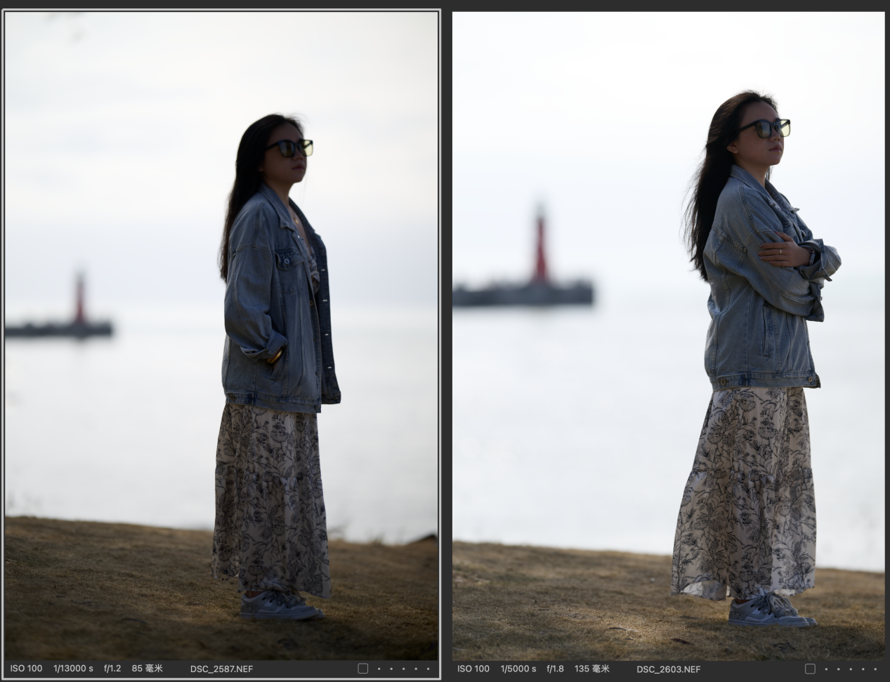 (对比图的排列都是以图一为Z 85mmf/1.2 S镜头拍摄,图二为Z 135mm f/1.8 S Plena镜头拍摄的顺序,且图下有参数标识)
