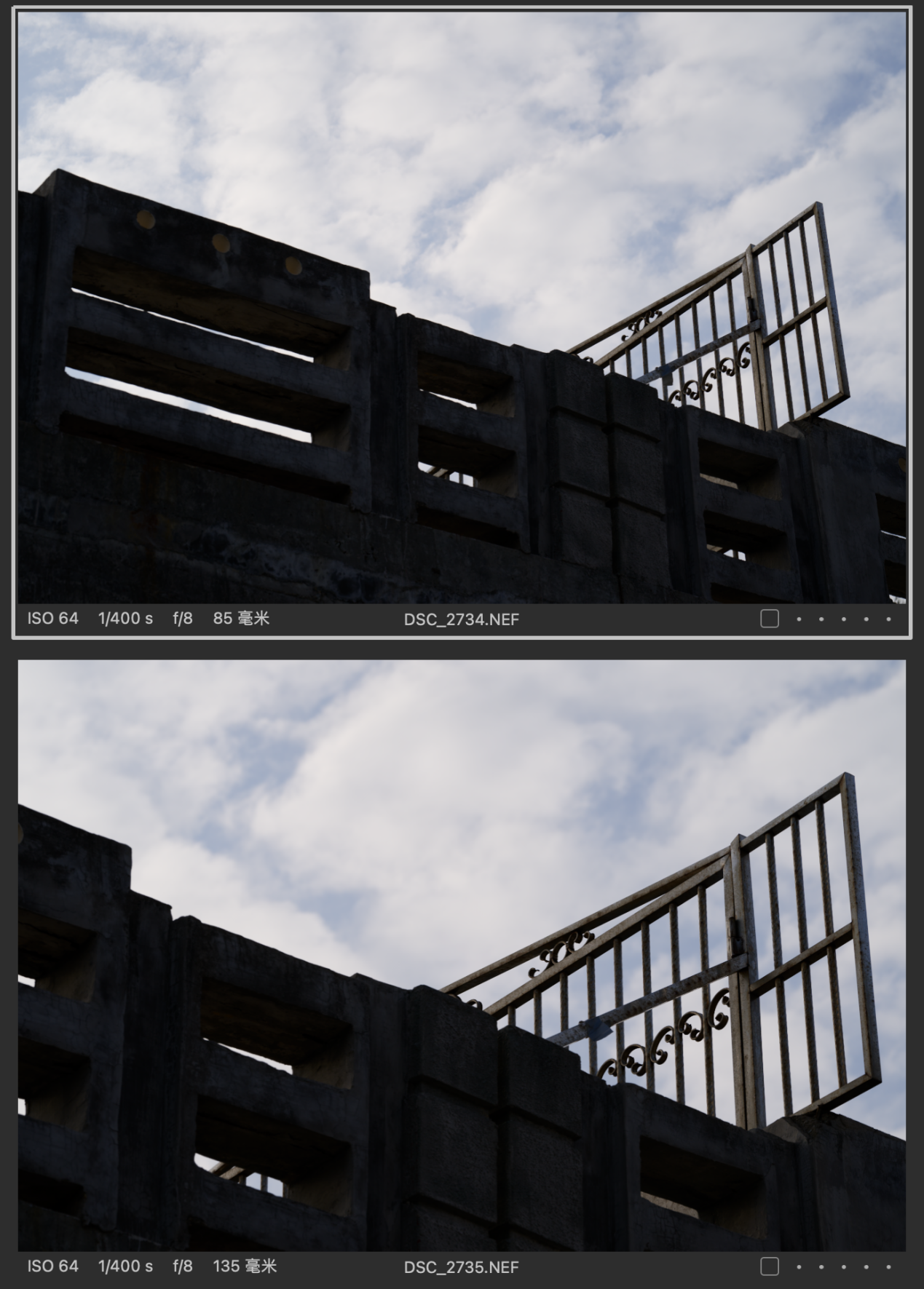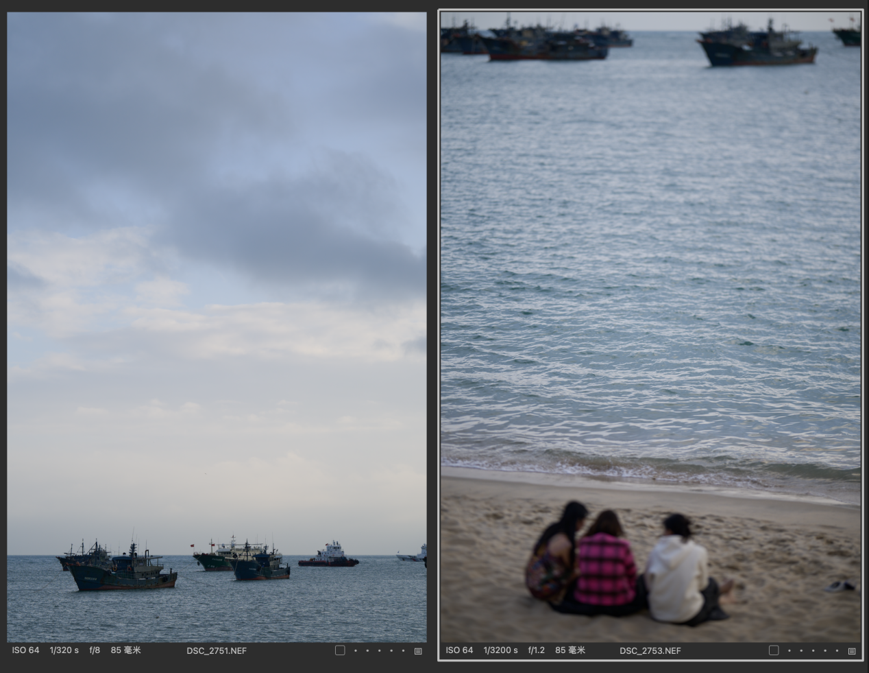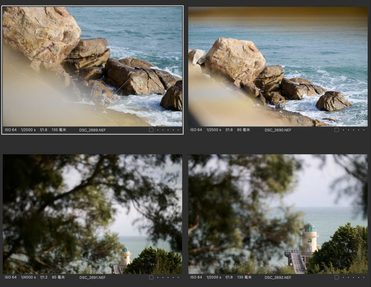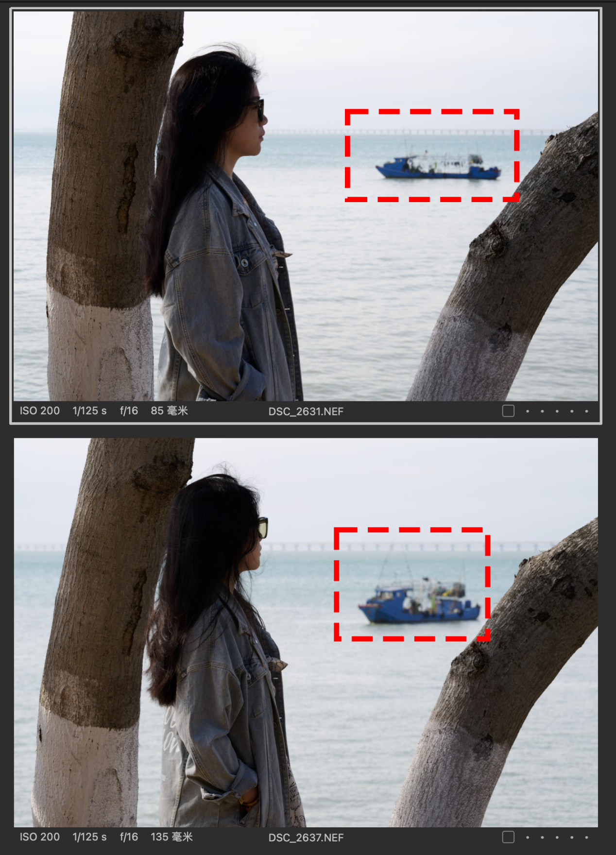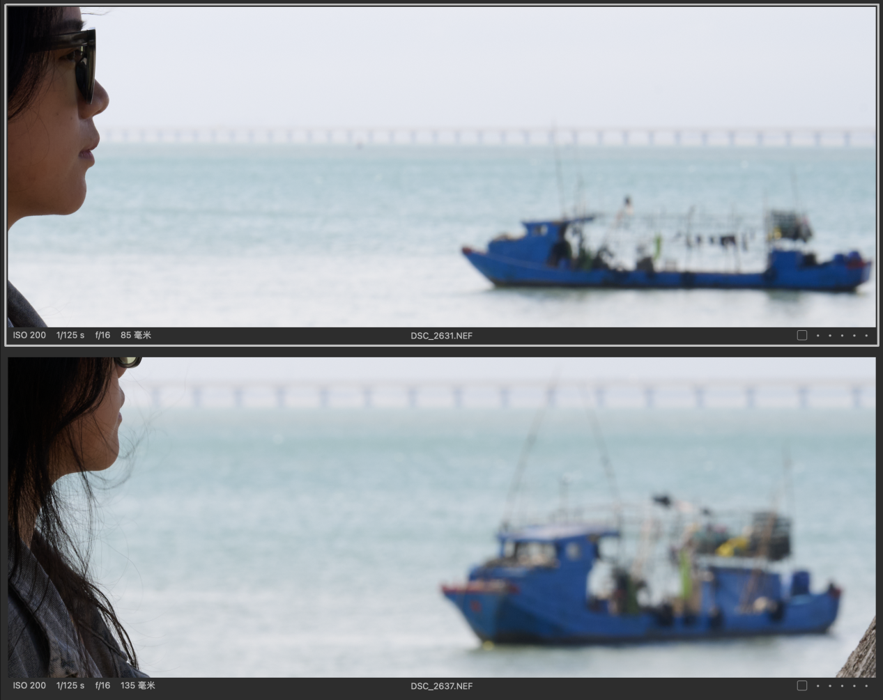 (对比图的排列都是以图一为Z 85mmf/1.2 S镜头拍摄,图二为Z 135mm f/1.8 S Plena镜头拍摄的顺序,且图下有参数标识)