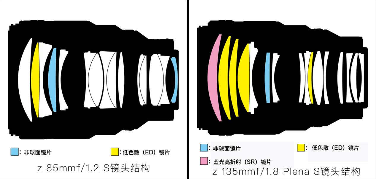 事不宜迟,我们先看它们有什么相似的地方。首先外观上,它们尺寸相当,镜身都有S-line家族的大“S”图腾,都有L-Fn(镜头功能)按钮,方便用户在机身上分配自定义功能。镜头口径都是82mm,所以他们的UV、CPL、黑柔、镜头盖等配件都可以共用。内部结构方面,为有更好的焦外光斑效果,均采用11个光圈叶片,Plena更因均匀圆润的圆形光斑而有“圆神”之称。最近对焦距离都是约0.85m左右,也因此,即使Plena最大光圈不及Z 85mm f/1.2,但凭借更长焦距和更短对焦距离,Plena也能得到强大的虚化力。
