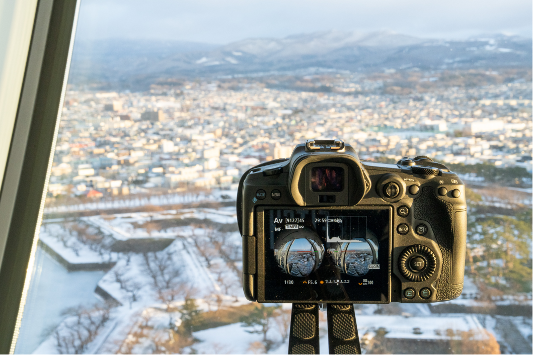 在今年元旦,我通过兰拓众测拿到了这套EOS VR拍摄设备,带着佳能EOS R5微单相机以及RF 5.2mm F2.8 鱼眼镜头去到了北海道,拍摄了一些素材,包含固定机位的照片和视频,以及移动的视频,最终制作成了一个长视频的形式。
