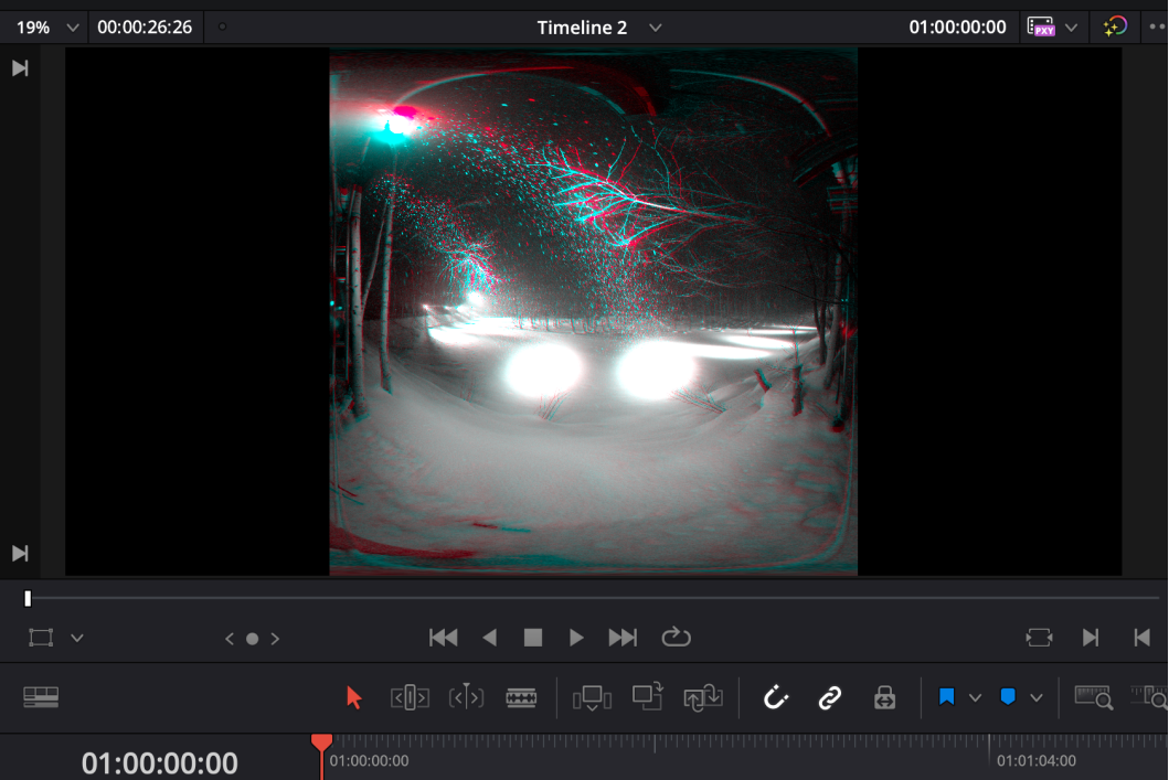 导出后的素材在达芬奇中Anaglyph预览,可以看到无垂直视差,越远处水平视差越小