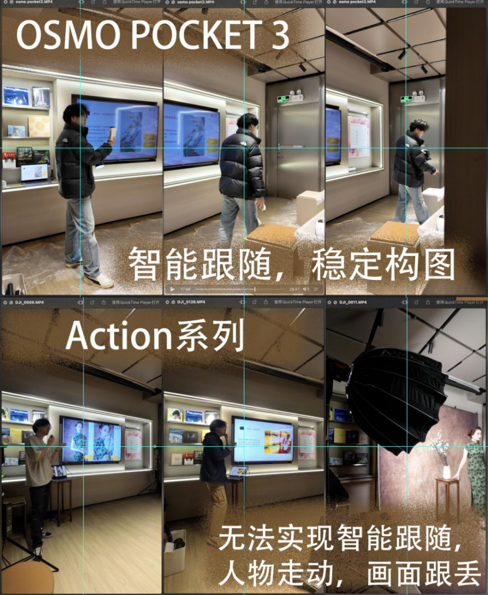(智能跟随也是笔者实测后最推荐的加分项,特别适合平时需要录制个人Vlog、运动博主、课堂记录等使用场景,人物走动不会跟丢画面,避免了太多尴尬。)