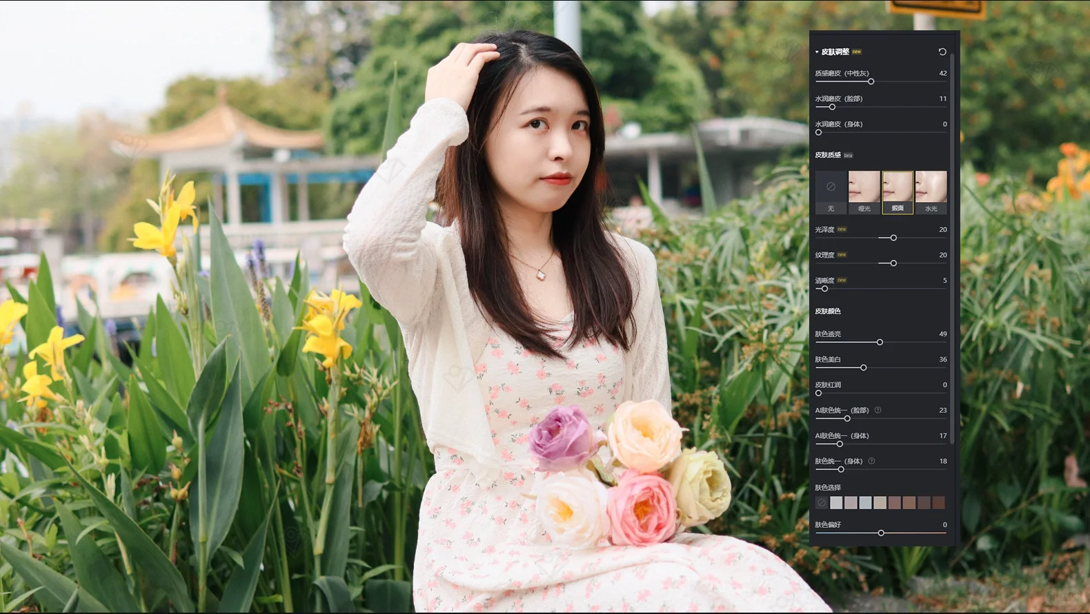 3. 同时,AI脸部与身体的肤色统一那是一个功能都不落下,有了这两个功能的加入,整个人的皮肤就不会出现一片红一片黄的感觉了,使得照片观感讨喜。