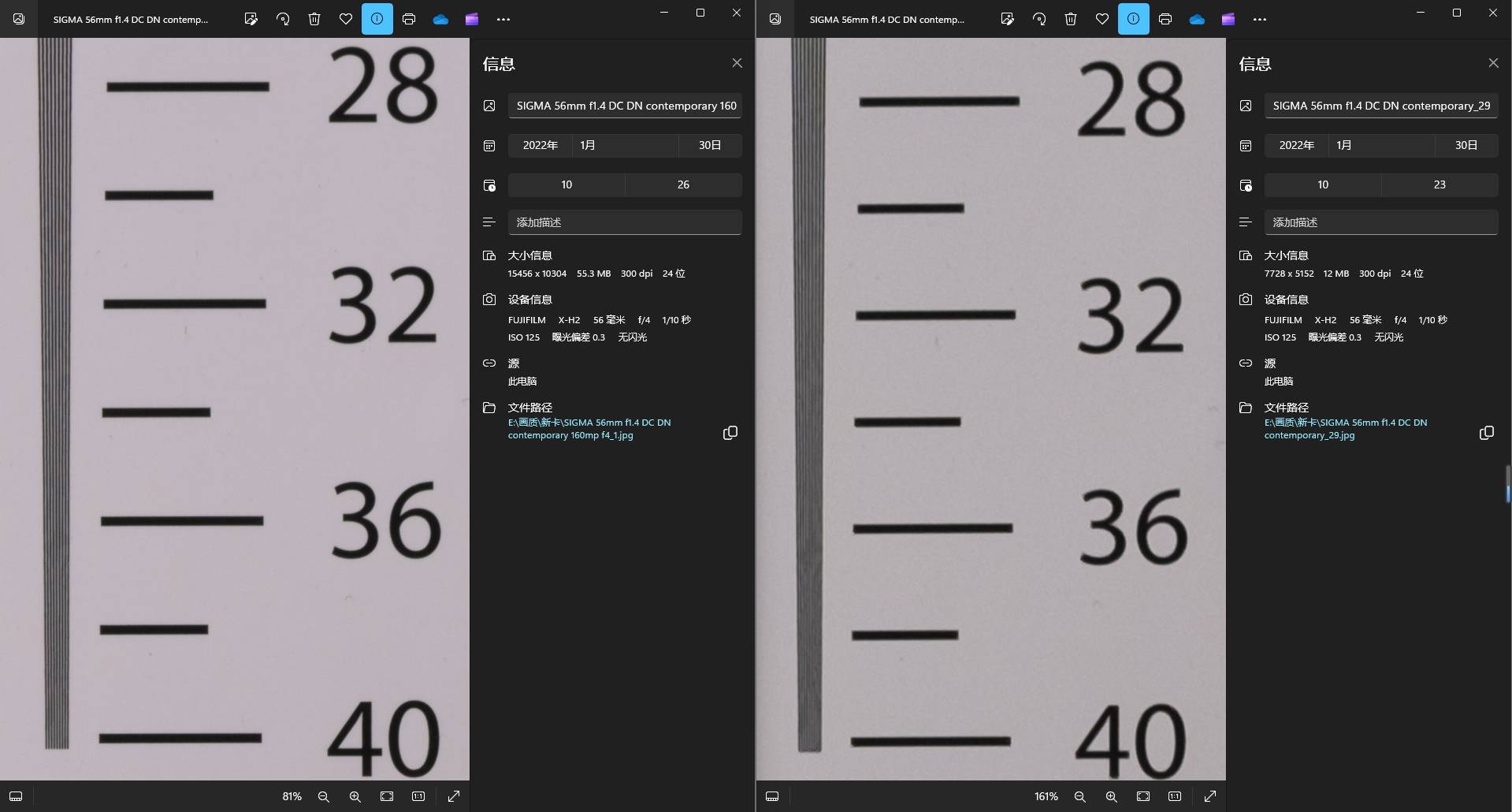 半画幅4000万,像素密度之高尚属人类首次,并且去低通,但是众所周知xtrans的加持会有效减少摩尔纹和高感,也会一定程度的牺牲分辨率,表现具体如何,直接来看标板测试。