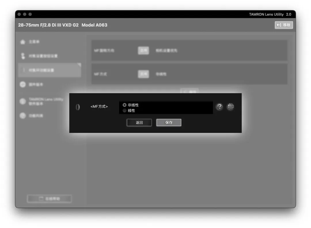 另外对焦环也可以在此进行旋转方向与线性/非线性的调整设置。能够根据操作习惯设置成一支操作更方便的镜头。