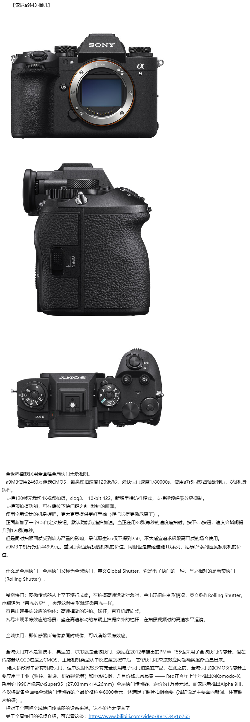 上新日期2024年04月12日——索尼 A9M3 仅机身