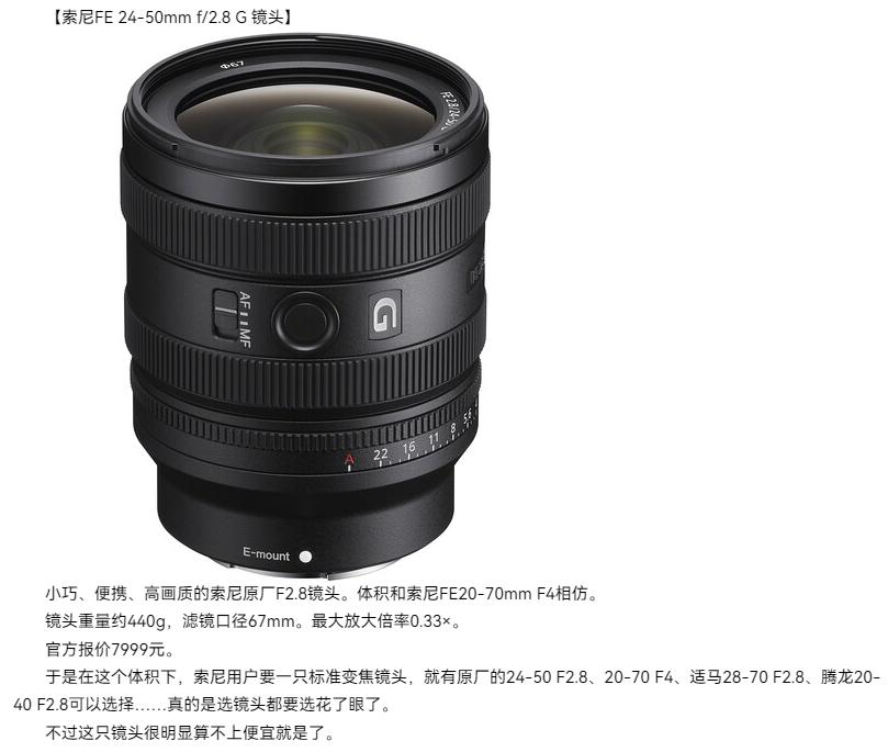 上新日期2024年04月09日——索尼 FE 24-50mm F2.8 G