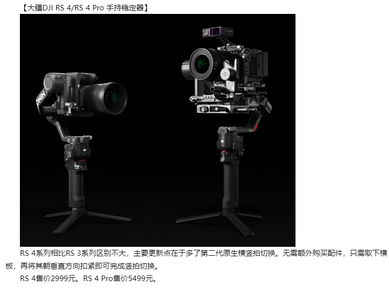 上新日期2024年04月12日——大疆 RS4 手持相机稳定器 DJI RS4