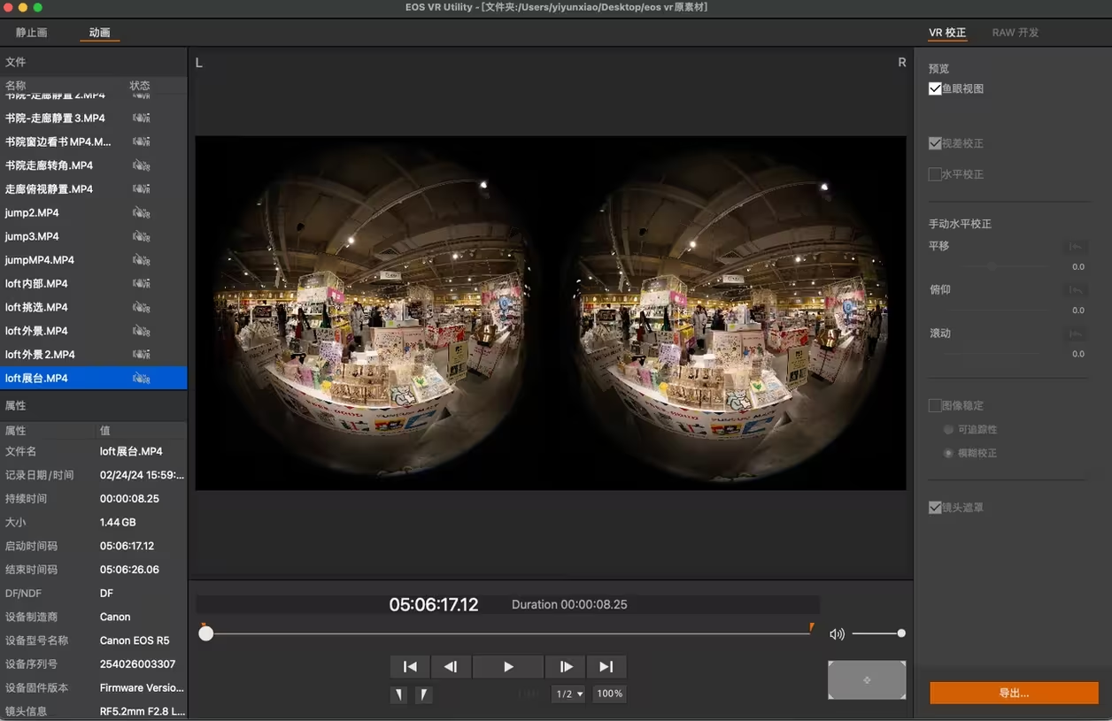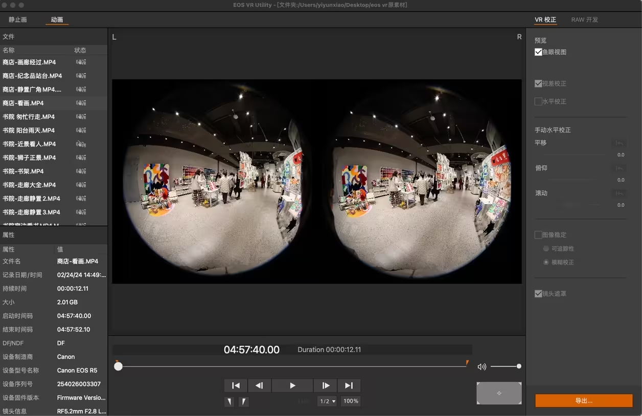 2. 高质量成像:我在体验时使用的是EOS R5,通过拍摄8K视频,可以输出为双目4K的全景VR视频,比起之前的VR相机在成像质量上提升巨大。不过VR设备录制本身的信息量巨大,可能十几秒的视频就可以达到2G甚至更高,外拍时需要注意尽可能备齐存储设备,同时也对后期加工处理的硬件提出了更高要求。