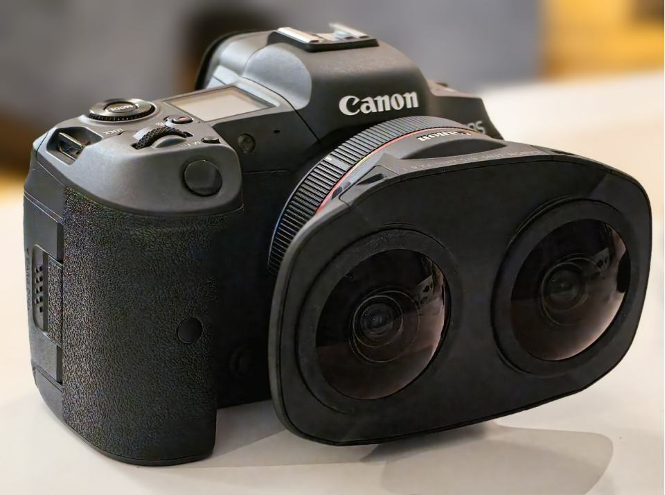 我们可以看到,这枚镜头的外观别具一格,搭配上佳能EOS R5和R5C,最高可以拍摄8K的180 °3D VR素材。同时佳能还提供EOS VR Utility及Adobe视频后期软件的插件EOS VR Plug-in for Adobe Premiere Pro,方便VR视频的确认及文件转换。至此,佳能通过“微单机身+VR镜头+后期软件”构建起覆盖从拍摄到后期全程的EOS VR系统,降低VR视频制作门槛,帮助VR视频的拍摄及制作真正走向大众。