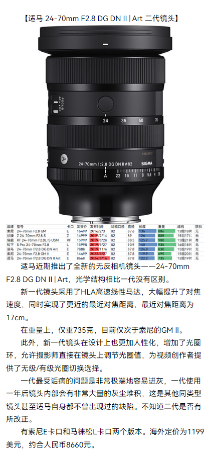 1、上新日期2024年06月06日——适马 24-70mm F2.8 DG DN Art 二代 索尼FE口