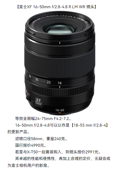 4、上新日期2024年06月13日——富士 XF 16-50mm f2.8-4.8 R LM WR