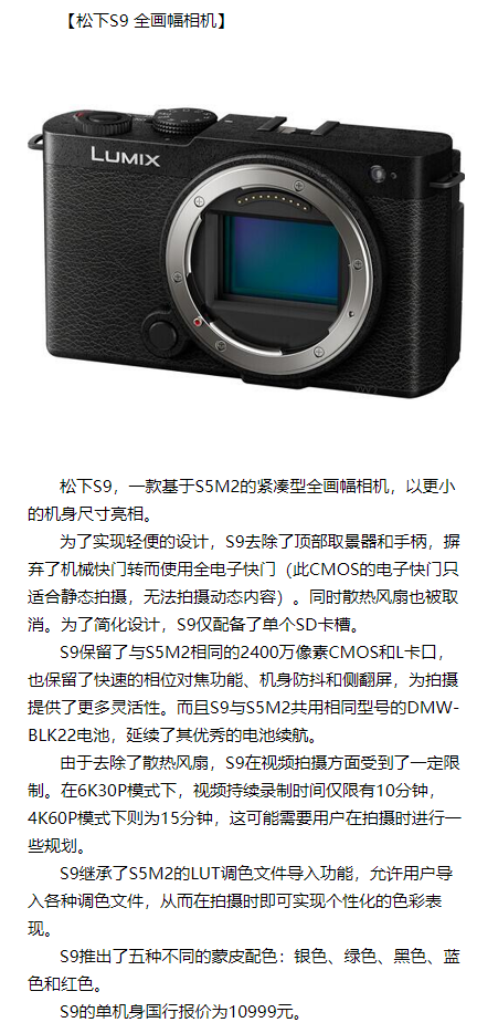 6、上新日期2024年06月19日——松下 S9(20-60套机)