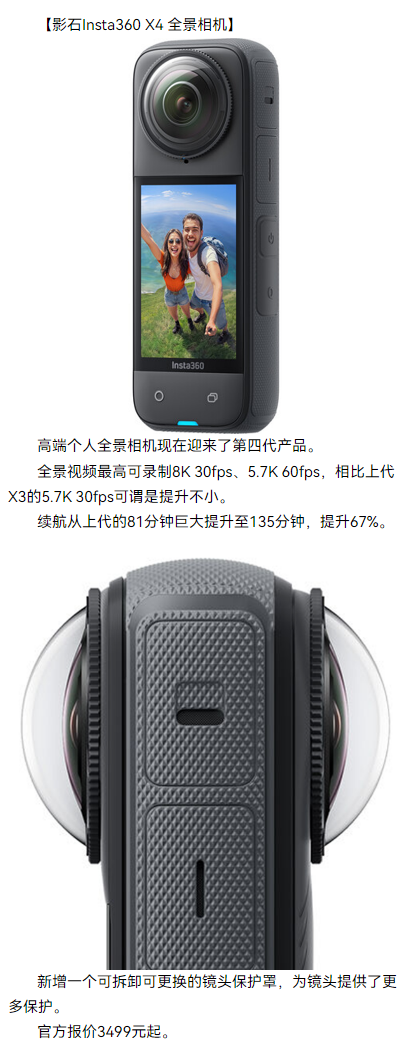 3、上新日期2024年06月13日——影石 Insta360 X4 全景相机