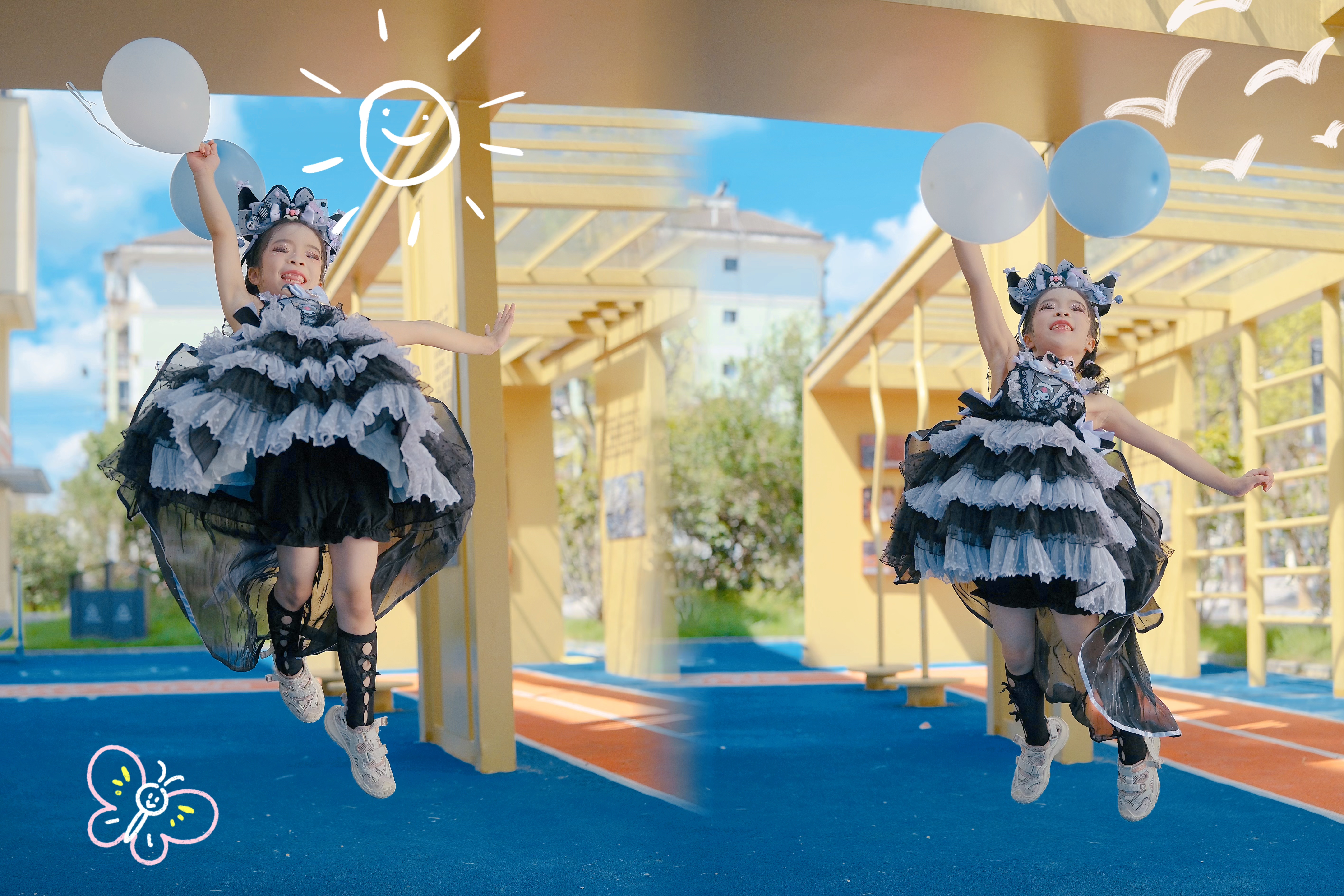 实拍中,我请了朋友的小孩专门测试了在连拍模式下A7C II在抓拍运动人像时的追焦精准度。 A7C II的最高连拍张数为10张/秒,当开启人脸/眼识别后,相机可快速对画面中的运动的小朋友进行识别合焦,即使是侧脸也能识别。 最终,在这一组手拿气球跳高的动作中,总共连拍了13照片,全部精准对焦在人眼。