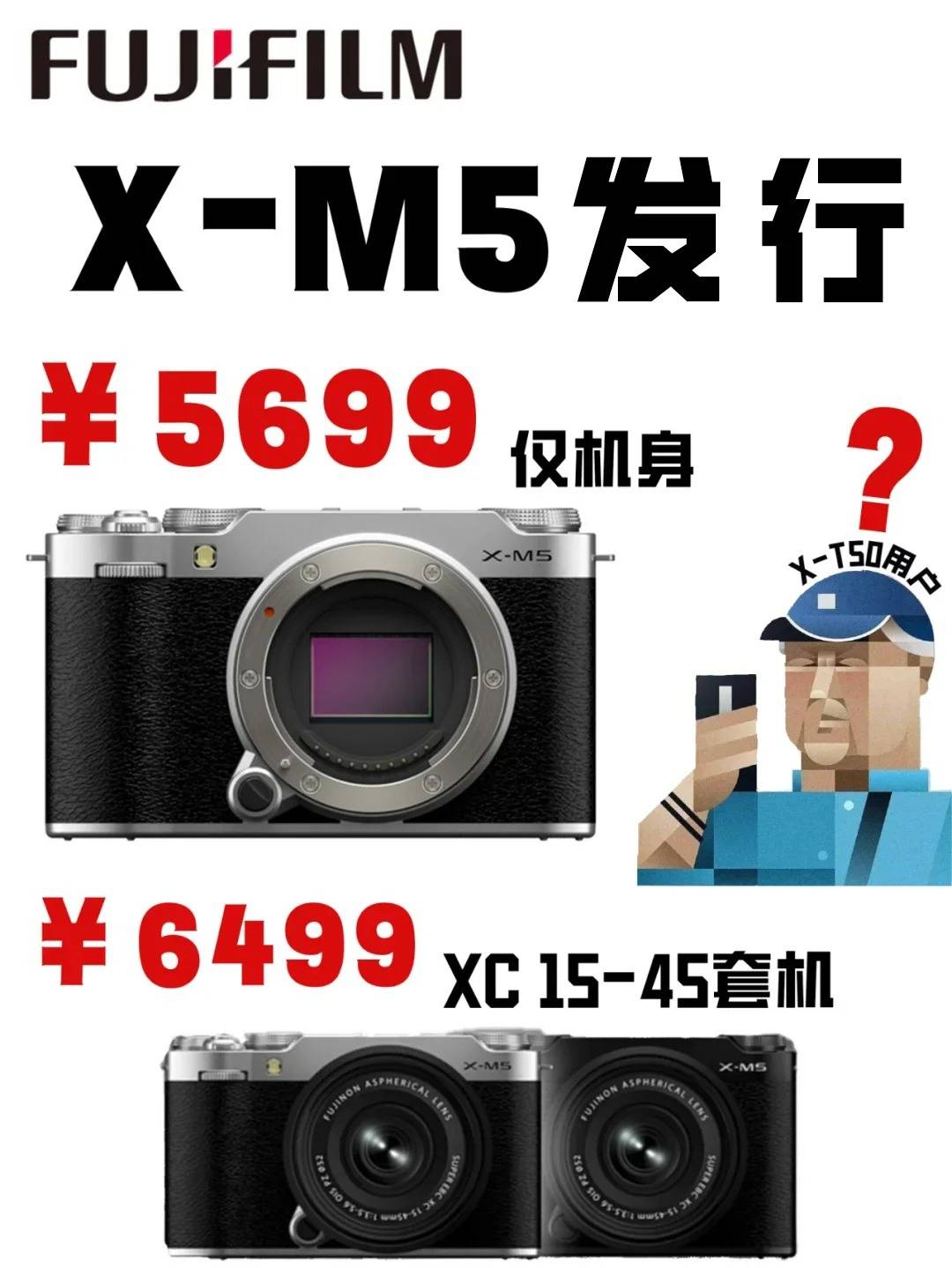 X-M5,远古系列x-m回归之作,除了cmos不一样,大部分主要参数和年中发布的X-T50基本相同,价格到时相差十万八千里,但发行价能不能拿到手就另说了。比较有意思的是,屏幕上方有一个3.5mm的麦克风接口,这个布局还真属独一份