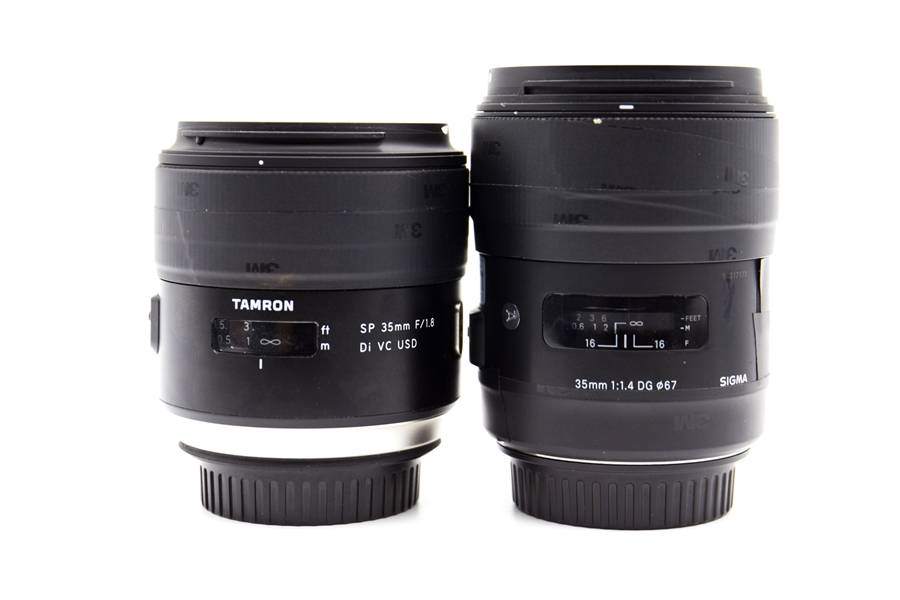 跟我们的老朋友适马35mm f/1.4 DG HSM Art比一下大小,可以看到由于光圈只有f/1.8,其实际长度小于适马。直径方面差不多。