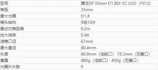 关于腾龙SP 35mm f/1.8 Di VC USD