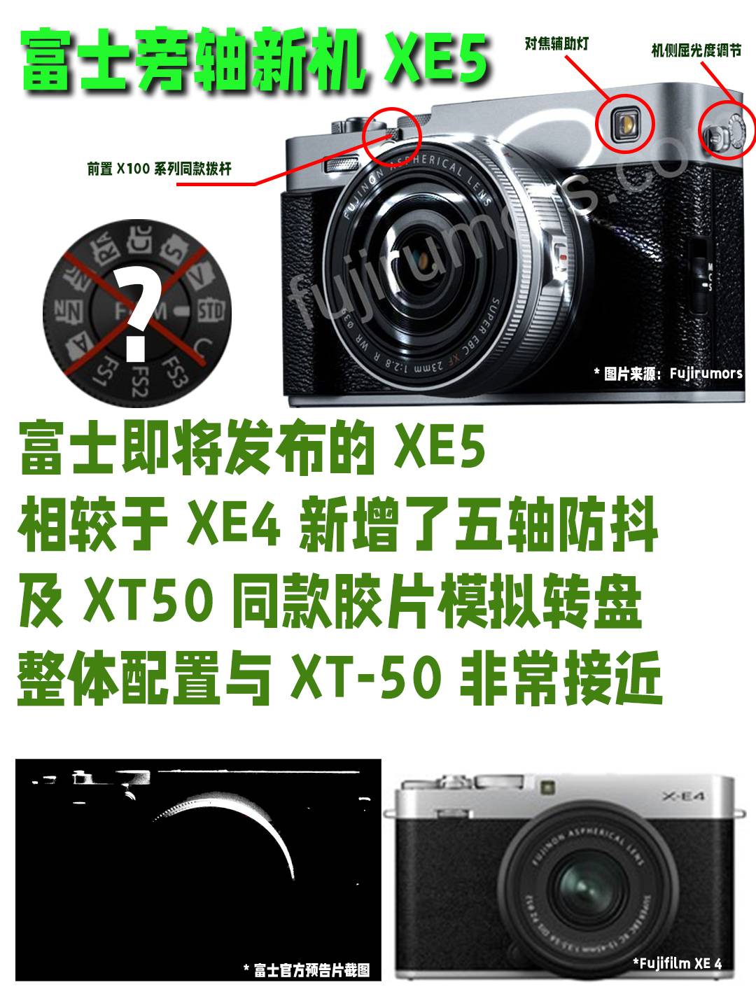 相信大家最近应该都关注到了即将在6月12日开展的富士X Summit 上海发布会,很多喜爱旁轴的小伙伴已经按耐不住了。是的,兰拓一样期待着富士X-Pro系列的更新。但是据目前得到的消息,本次发布会主要是围绕XE系列的更新开展。先别着急失望,本次更新的XE5将于去年同期发布的XT50采用非常接近的规格,同时也是XE系列首次搭载五轴防抖技术!而从增加的XT50同款胶片模拟转盘上可以大胆猜测,富士未来可能将会在APS-C中端机器上普遍应用这项设计。与此同时,富士将会同步发布全新定焦镜头XF23 F2.8,感兴趣的朋友记得定好发布会时间!