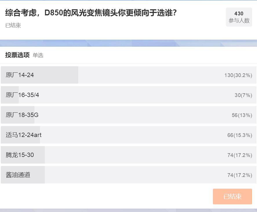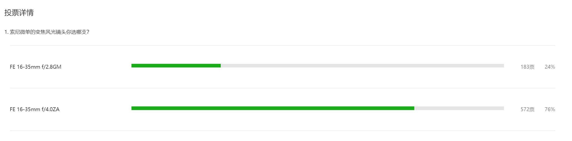 索尼:A7R3(原本定的是A7R2,然而后来新机突然发布)+FE 16-35mm f/4ZA (这个是最早的一期,没在微博投票,不过可以看到16-35ZA是压倒性优势)