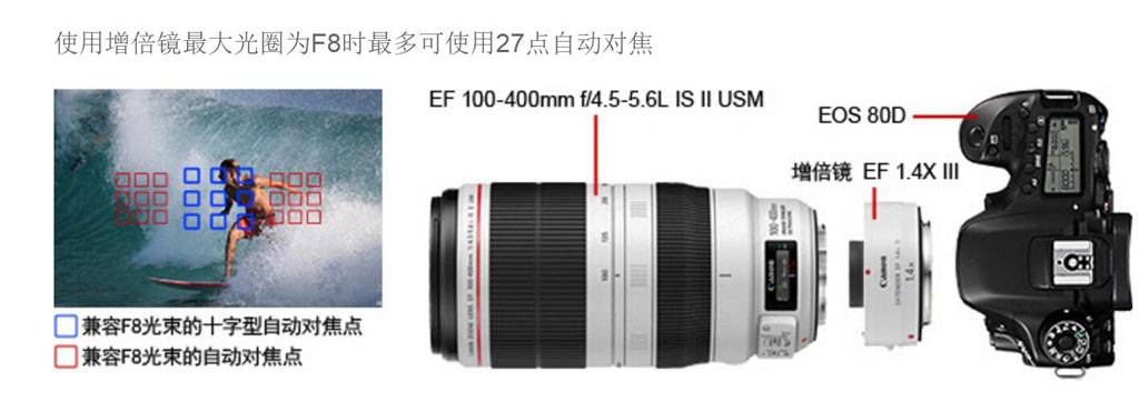 当然为了避免被说是黑佳能,还是要特别提示一下,下面这个组合(三代增距镜)可以在80D/6D2上用到27点的f/8光束自动对焦,具体实现方式不明。