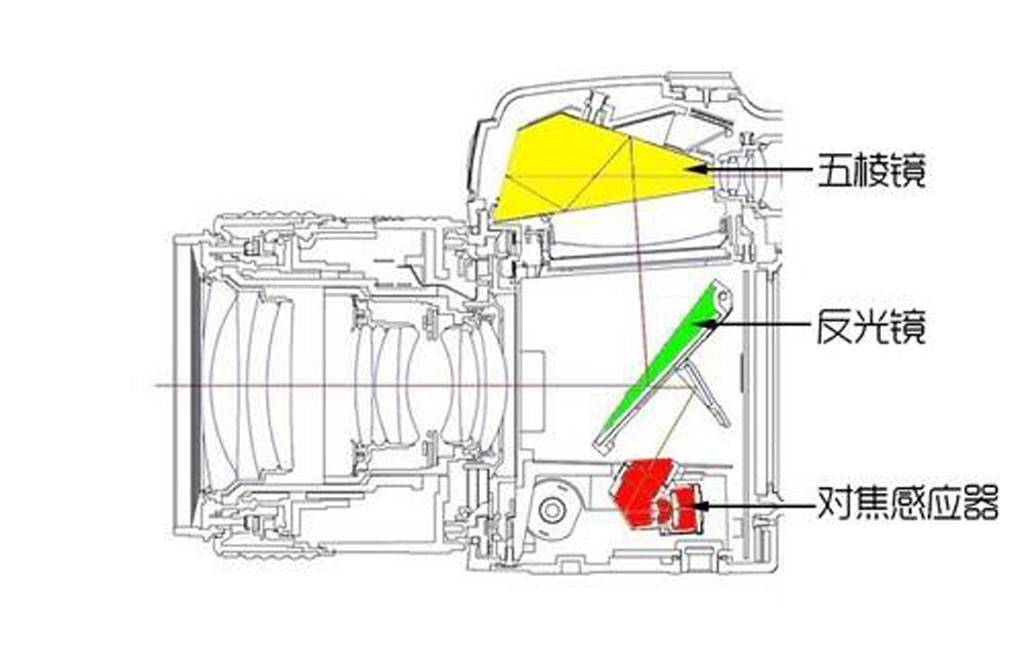 只不过单有这个对焦模块,还没法实现相位检测。单反还有一套复杂的分光光学系统,来配合相位检测模块实现自动对焦: